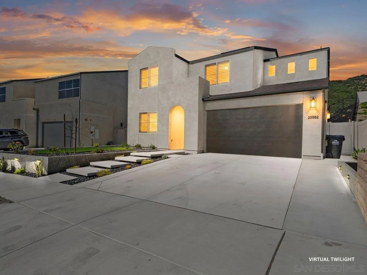 Experience single-level luxury in the sought-after Citro Community, Fallbrook nestled conveniently between the 15 and 76 Freeways in a lovely family friendly neighborhood. Roughly two miles from either freeway you are just minutes from Temecula’s fabulous wineries and restaurants, yet close enough to the Pacific Ocean for an easy weekend trip to the beach. This 4 bed, 3 bath , Plus Loft , 2 Car Attached Garage built in 2024 ( 1 bedroom & Full Bathroom Downstairs. ) home delivers sophisticated, turnkey living with premium upgrades throughout. Enjoy walnut hardwood floors, designer kitchen with quartz counters, and seamless indoor-outdoor flow. Modern comforts include a security system, water softener, reverse osmosis, insulated garage, and covered patio. Resort-style amenities and a prime commuter-friendly location complete this exceptional offering. Discover refined Fallbrook living today. Terrific community pool and clubhouse and plenty of hiking trails just steps from your front door. This location is perfect for peace and serenity, away from the hustle and bustle of busy lifestyles. This uniquely styled, newly built home, only one year old, has all the highly coveted attractions of newness and freshness. As a new Construction , the property includes builder Warranties and comes with solar already installed. WITH ABSOLUTELY EVERY FEATURE UNDER ONE YEAR OLD THIS HOME IS MOVE-IN READY NOW! Pictures for second & third upstairs bedrooms are coming as more pictures for the primary bedroom.