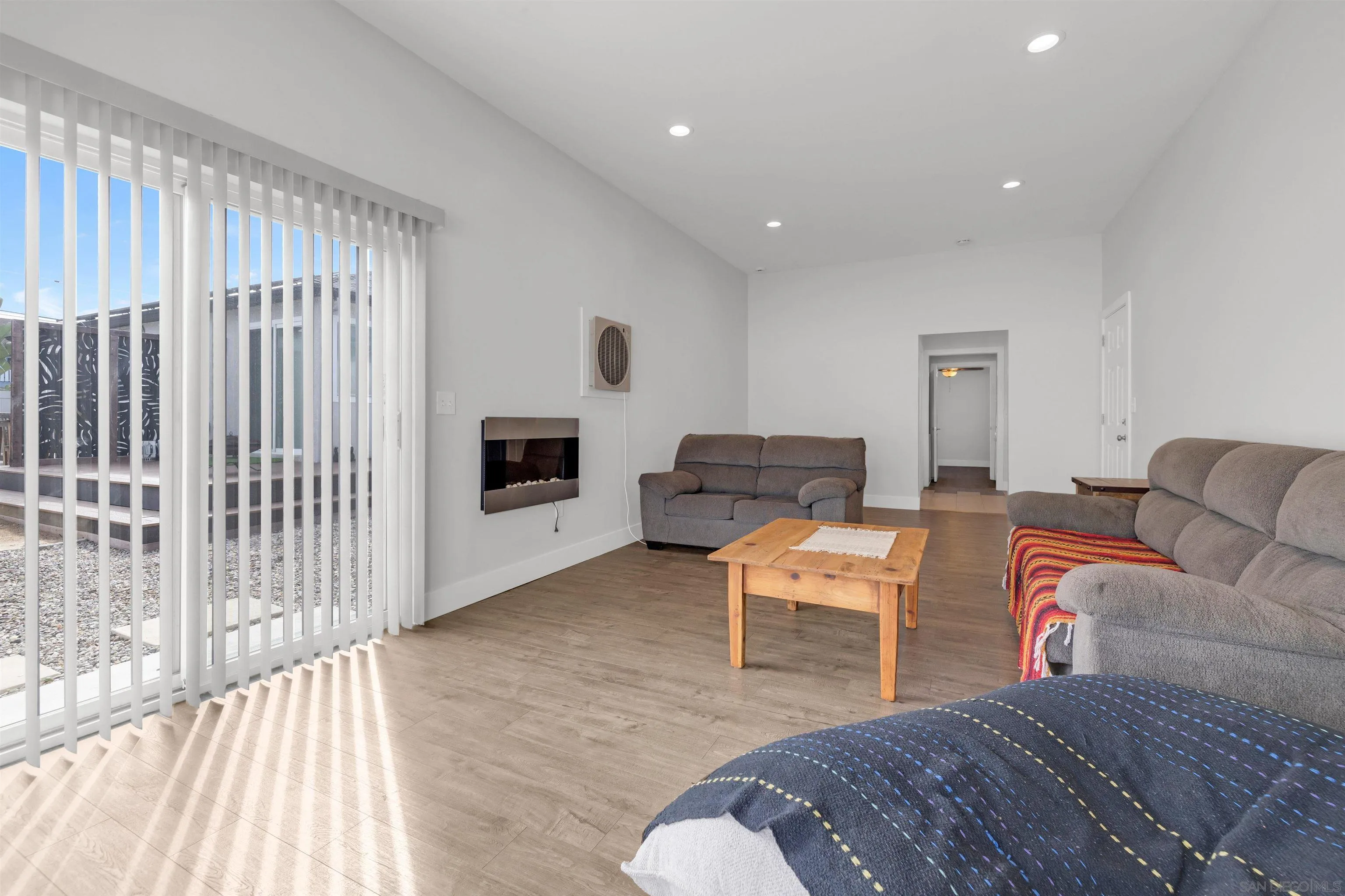 Welcome to Shangri-La! A rare corner-lot triplex in the heart of El Cajon. This meticulously maintained property sits on an oversized 0.24-acre lot (10,375 sq ft) and offers something you simply don’t see every day — space, personality, and resort-style living. The unit mix includes 469 Taft, a 2 bed/ 1 bath residence with original oak hardwood floors and a new forced air heater and A/C system; 475 Taft, a 1 bed/ 1 bath unit with its own private side entrance and spacious kitchen; and 477 Taft, a 1 bed/ 1 bath unit featuring an expansive living room with an electric fireplace. Energy efficiency is enhanced by a 7.97 kW solar system installed in Summer 2018. For investors seeking additional upside, the generous lot size and configuration may allow for the addition of a fourth unit (buyer to verify w/city). The grounds are thoughtfully landscaped with drought-tolerant plantings throughout, multiple well-kept patio areas, and a large, newly refinished sparkling pool that creates a true backyard retreat atmosphere. The layout provides privacy and separation between units while still feeling open and welcoming. Envision a multi-generational living arrangement, occupy one unit while generating income from the others, or hold it purely as a strong pride-of-ownership investment, the flexibility here is exceptional. Each unit features updated kitchens and bathrooms, additional storage, and abundant off-street parking, along with a 1.5-car garage accessed off Camden Ave. Come see this triplex with character, space and soul!