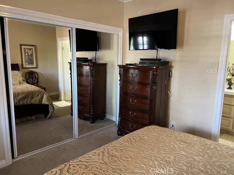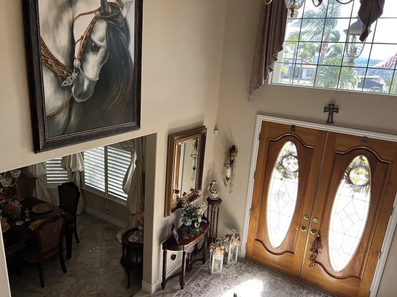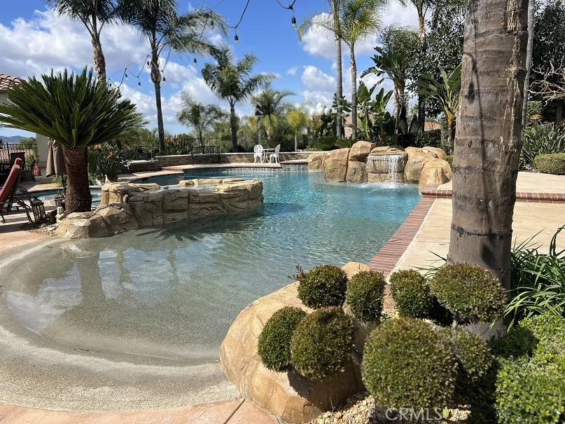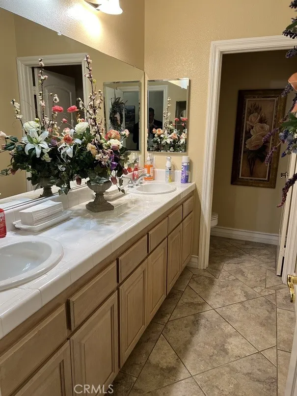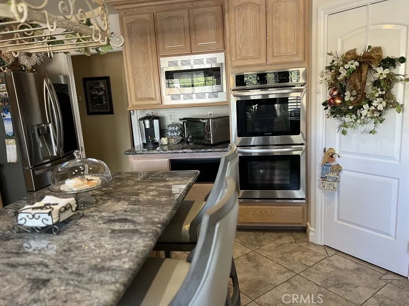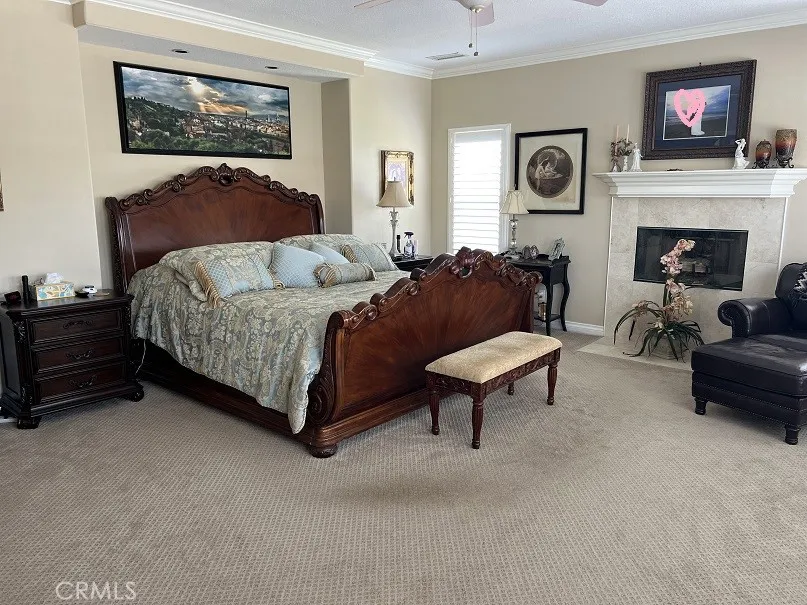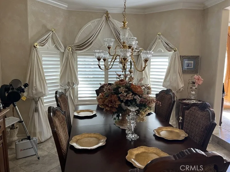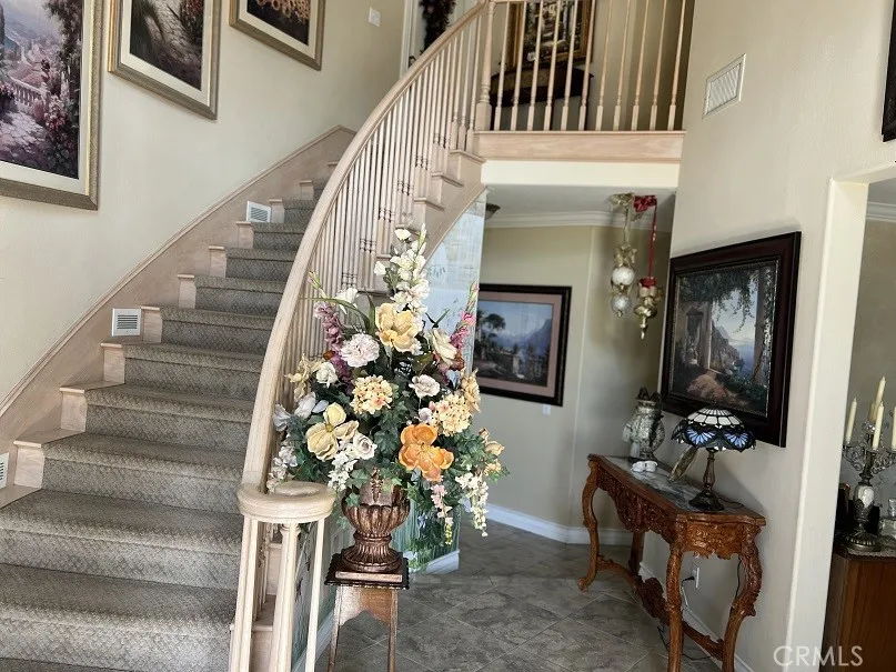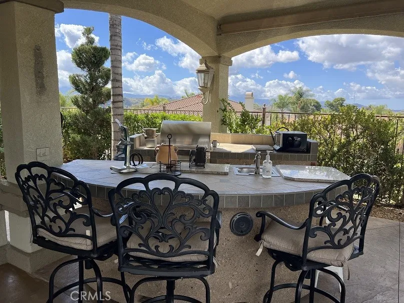 Start living your dream in this paradise that embraces comfort, luxury, tranquility, and elegance. Ideally planned on a quiet Cul-De-Sac with breathtaking views of summer sunsets, and mountain views. Property entrance with a custom automated iron gate with secure digital and remote access. Extra-long driveway for multiple RVs and a Grand RV garage large enough for a 42-footer RV. Landscaped with meticulous care and drought resistant plants in the front, and grass in the back for children to play. Mature trees and fruit trees throughout. Elegant entrance with exquisite double solid wood doors and ceramic tile floor throughout first floor. Spiral elegant wood stairway casing professionally crafted in the front and a 2nd stairway access in the back for casual access or service access. Inviting formal living room with raised ceilings and chandelier lighting. Mediterranean style formal dining room, Classic grey granite counter tops over oak kitchen cabinets. Kitchen equipped with double stainless-steel ovens, microwave oven, dishwasher, food warmer, stainless steel stove, and a separate ice maker. Plantation shutters throughout the whole house and some rooms with custom window decorations. Chandeliers and ceiling fans. Burbon carpet and professionally installed ceramic tile. 6-inch baseboards and crown molding throughout the home. Purchased 47 solar panel system that generates enough electricity to power the entire estate at an estimated savings of 75%. Intercom system, dual ac units with their own thermostats, central vacuum system, and alarm system. 3 of the 5 bedrooms have th