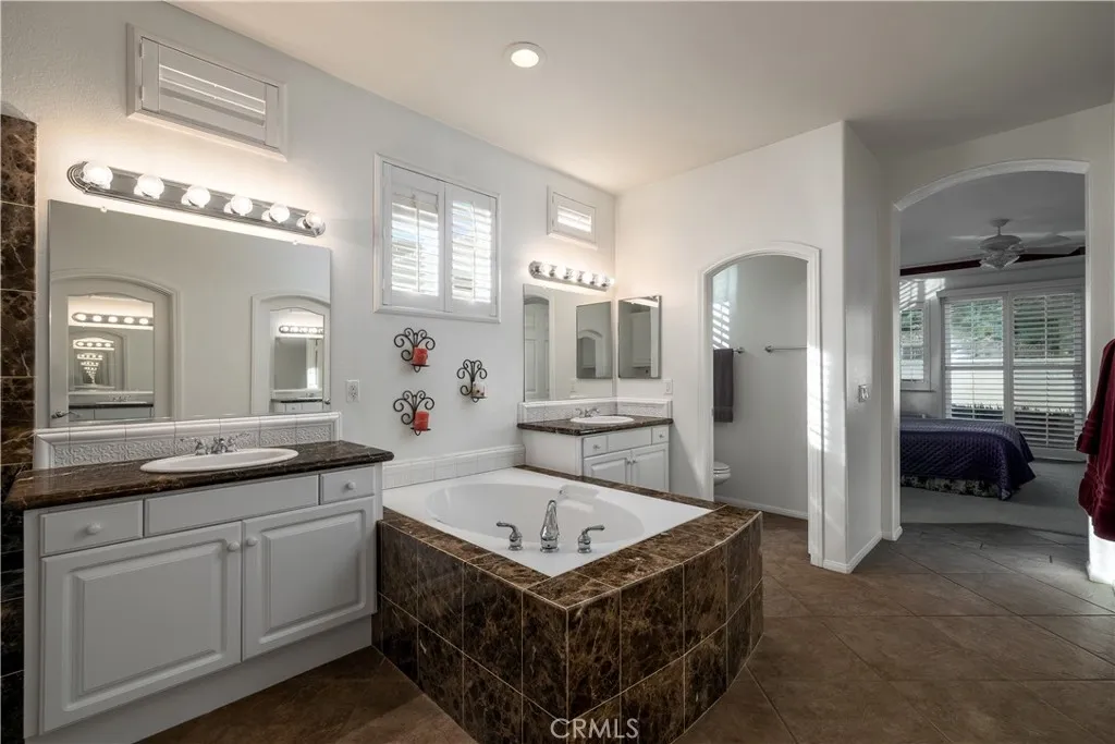 Welcome to the Gated 55+ Resort-Style Community of the Oasis! Take advantage of this rare opportunity! Own a beautifully maintained home located on a large elevated-premium lot. This home offers exceptional privacy with no rear or left side neighbors. Enjoy awesome views of Menifee Valley, hills/mountains, city lights and sunsets. This highly sought-after floor plan offers expansive tile flooring and plantation shutters throughout. The spacious living room is perfect for entertaining highlighted by high tray ceilings, a cozy fireplace, and amazing backyard views framed by the surrounding hills. Gourmet kitchen with butcher block island, granite counter tops, double ovens, crisp white cabinetry, counter height seating, casual eating area and formal dining room. Large laundry room with sink and plenty of cabinets...which leads to the 2 car garage with side storage cabinets and work area. Featuring two generously sized bedrooms and and flexible office/den space. The Primary bedroom offers sliding doors to the scenic rear patio, his and hers closets and vanities, walk-in shower, and large soaking tub. Step outside to the peaceful private backyard which is a true Retreat. Take in the serene nature and sweeping mountain views while relaxing in your Custom Built-In Spa! This low maintenance private yard offers Custom Pavers, Alumawood cover, automatic drip system, fruit trees, and private block walls. New HVAC system replaced in 2024. HOA covers front yard water, landscape care, and trash. Amenities include: large clubhouse, fitness center, library, sparkling pool/spa, tennis/pick