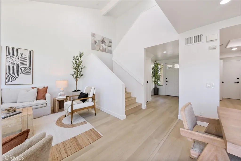 Modern Luxury Meets Privacy in the Heart of Irvine. Experience the pinnacle of turn-key living in this rare end-unit townhome, where contemporary design meets unparalleled privacy. With no neighbors above or below and only one shared wall, this residence offers the feel of a detached home. Architectural Sophistication. Step into a light-filled sanctuary defined by soaring double-height ceilings and expansive windows that frame serene views of the surrounding greenery. The open-concept living area features wide-plank flooring and recessed LED lighting, anchored by a sleek fireplace and a dramatic architectural staircase. Gourmet Kitchen & Dining. The reimagined kitchen is a study in modern minimalism, featuring: * Custom White Oak Cabinetry with matte black hardware. * Pristine Quartz Countertops and a contemporary gooseneck faucet. * A seamless transition to the dining area, perfectly positioned for both intimate meals and larger gatherings. Spa-Inspired Retreats. The bathrooms have been elevated to five-star standards, boasting: * A European-style floating oak vanity and a back-lit LED mirror. * A custom shower-over-tub with a frameless glass shower door. * High-contrast matte black and gold accents set against designer tile. The Ultimate Outdoor Oasis. Rare for the area, the spacious private backyard is a true extension of the home. Relax on the designer-paver patio surrounded by lush landscaping and blooming rosesthe perfect backdrop for al fresco dining or evening cocktails under the Irvine sky. Prime Location & Amenities. Enjoy direct access to your one-car garage and