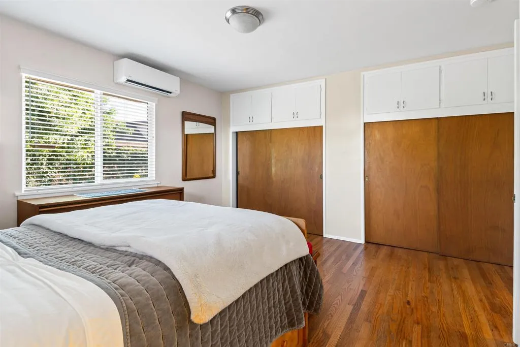 Mid-Century Modern Gem Near Downtown Vista. Timeless style meets thoughtful updates in this beautifully preserved mid-century modern home that is perfect for the niche buyer who appreciates authentic architecture and character. This 2-bedroom, 2-bath home with a dedicated office blends classic design with modern improvements. Original wood flooring highlights the homes mid-century charm, while the kitchen features refreshed 4x4 tile for a clean classic look and both bathrooms have been completely renovated. New vinyl windows with blinds bring in natural light and improve comfort and efficiency. Major upgrades include new plumbing under the home, mini-split AC/Heat/Dehumidifier, an upgraded electrical panel, a new roof and rain gutters. The spacious yard with mature fruit trees offers a private outdoor retreat for gardening, entertaining, relaxing, and room to build an ADU for multi-generational living at its best. Additional features include a new garage door and Ring security cameras. Located within walking distance to Vista Village restaurants, shops, breweries, and community events. Take advantage of this rare opportunity for the niche buyer seeking timeless style in a desirable Vista neighborhood.