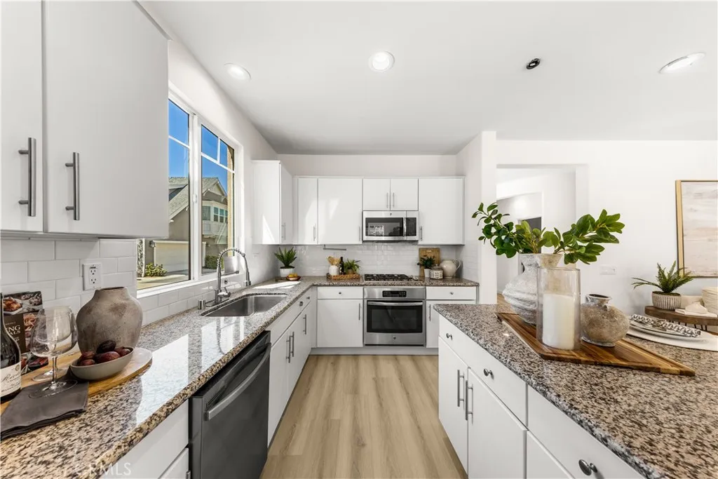 Welcome to this beautifully upgraded 4-bedroom, 3.5-bathroom single-family home located in the highly desirable Beacon Park neighborhood of Irvines Great Park community. Built in 2016 and offering approximately 2,462 square feet of thoughtfully designed living space, this residence combines modern elegance with everyday functionality. The home features a highly sought-after dual primary suite layout, complete with its own private bathroom and walk-in closetideal for multi-generational living or guest accommodations. An additional powder room on the first floor adds convenience for everyday use and entertaining. At the heart of the home is a stunning open-concept living area, where the gourmet kitchen seamlessly flows into the dining and living spaces. The kitchen is appointed with a large granite island, custom backsplash, and premium finishes, creating the perfect setting for both daily living and hosting. The entire home has been fully upgraded, offering a clean, modern aesthetic and true move-in ready condition. Upstairs on the second level, youll find three additional bedrooms, including a spacious primary suite designed as a private retreat, along with two well-sized secondary bedrooms that offer flexibility for family, guests, or a home office. The third level is a unique highlight of the home, featuring a private rooftop-style terrace. This elevated outdoor space is perfect for relaxing, entertaining, or enjoying beautiful sunset viewsadding an extra layer of lifestyle and functionality to the home. Situated on a desirable corner lot, the property offers a generously