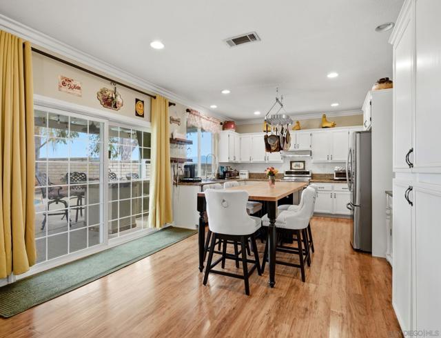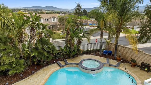 Situated on a premium corner lot with scenic views in the highly sought after Crowne Hill community of South Temecula, this move in ready five bedroom three bath home offers 3,395 square feet of beautifully upgraded living space designed to impress from the moment you arrive. Wood floors flow throughout the home, creating warmth and continuity, while natural light fills the open living and dining areas. The remodeled kitchen anchors the home with upgraded appliances, abundant cabinetry, and an oversized butcher block island that invites gatherings and everyday connection. Just off the main living space, the outdoor kitchen sits beneath a stunning Alumawood patio cover and overlooks the heated pool and spa, transforming the backyard into a true resort style oasis ideal for entertaining, relaxing, or watching the game. The first floor features a full bathroom and a dedicated office, perfect for working from home or creating a quiet retreat. Upstairs you will find oversized bedrooms, generous storage, and a spacious loft style bonus room ideal for a media room, playroom, or secondary living area. A fully paid twenty panel solar system adds exceptional energy efficiency. Located near award winning schools, shopping, dining, freeway access, Temecula wineries, and Pechanga Casino, this home delivers the lifestyle, layout, and upgrades buyers are searching for.