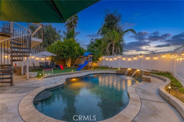 Welcome to this stunning pool home in Temecula no HOA and a low tax rate with RV/boat parking! A rare find at this price point within award-winning schools. Located in South Temecula, this home features a brand-new resort-style pool with cascading stone waterfalls, a spacious covered patio for entertaining, and an elevated deck with peaceful neighborhood views. The open layout offers seamless indoor-outdoor living, while the kitchen is finished with rich wood cabinetry, granite countertops, and stainless steel appliances. Situated within the highly regarded Temecula Valley Unified School District, the home is walking distance to local elementary and high schools, and just minutes from Promenade Temecula and Temecula Wine Country. This home offers the perfect blend of lifestyle, location, and convenience.