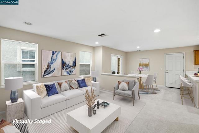 Welcome Home to Stanford Place, one of Pittsburg’s premier single-family gated communities. This home shines with fresh interior paint, brand-new carpet, and new laminate flooring throughout. Enter into a large, open family and dining area perfect for everyday living and entertaining. The open kitchen includes a pantry and stainless steel appliances. Main level features one bedroom with a full bath—great for guests or in-law needs. Upstairs, discover three additional bedrooms and a spacious loft bathed in natural light, ideal for a variety of daily living uses. The second floor also includes an upstairs laundry room that flows into a generous primary suite with a large walk-in closet and attached primary bath. Energy efficiency is enhanced by attached solar panels, helping to keep energy bills low. Location is superb: walking distance to everyday shopping needs, dining, and schools, with easy access to Hwy 4 and nearby BART—perfect for commuters. This is a must-see opportunity in a highly desirable gated community.