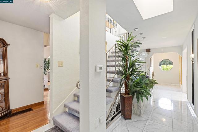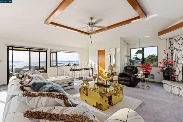 Spectacular panoramic views of SF Bay and beyond from almost every room. 3rd floor is a large recreation/family room with views to die for, with fully enclosed sitting room attached for enjoying the view. Original owner has maintained and updated the home extremely well. Stunning views from living room, each bedroom and the large rec room on the top floor. There is a potential in-law suite on lower floor with a full kitchen and half-bath downstairs. Main (2nd floor) kitchen has been updated and features a large island. 2nd floor also features a large formal dining room as well as a breakfast nook. 2nd floor hall bath is equiped with a walk-in Safe-Step jetted tub. Primary bedroom/bathroom is also on the 2nd floor and features a large walk through closet, sauna and, of course, a panoramic view. This property is also equiped with an electric car charger and a 5000 volt generator for backup power. All this just a short drive from the city and also close to shops, dining, transportation and more. Most of the custom made furniture on the property can be included in the sale, if desired. Open House 2-4pm Sunday 2/1.