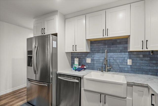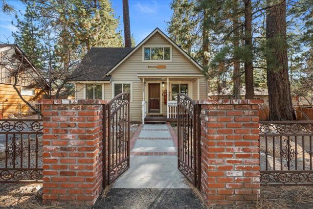 Welcome to this enchanting 1930s retreat in the coveted Boulder Bay neighborhood of Big Bear Lake, CA--expertly blending vintage charm with contemporary luxury after a full studs-out remodel in 2022. Situated on a unique street-to-street lot with a convenient two-car garage, this home is ideally positioned just moments from the sparkling lake, vibrant village shops and dining, and world-class ski resorts, offering the ultimate mountain lifestyle. Step through the inviting front entrance, framed by timeless brick posts and wrought iron railings, into a space that's fully furnished with tasteful, high-quality pieces ready for immediate enjoyment. Durable synthetic siding ensures low-maintenanceappeal, while new vinyl double-pane windows bathe the interior in natural light. The open layoutfeatures elegant laminate and tile floors, leading to a cozy living room anchored by a wood-burningstove--perfect for crisp evenings. The expansive chef's kitchen is a highlight, boasting new counters,custom cabinets, a chic tile backsplash, and premium high-end appliances for effortless entertaining.Both bathrooms have been thoughtfully updated with fresh tile showers and modern vanities,complemented by a tankless water heater for efficiency and a dedicated laundry area with stackablewasher/dryer. Venture outdoors to your private oasis: a spacious concrete patio designed for year-round gatherings, complete with a welcoming firepit, luxurious brand new jacuzzi, and rejuvenating sauna.Whether you're hosting friends or unwinding in solitude, this property captures the essence of BigBear's natural beauty and recreational bliss. Fully turnkey and impeccably updated, it's an exceptionalopportunity for a primary residence, vacation escape, or investment in one of California's most sought-after destinations.