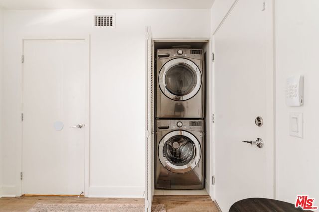 Set within one of Silver Lake's most sought-after enclaves, this fully detached contemporary home blends privacy, light-filled interiors, and a thoughtfully designed floor plan for modern living. Positioned as a desirable corner unit with no shared walls and no HOA dues, the home feels peaceful and removed while remaining moments from the heart of the neighborhood. Thoughtfully updated throughout, the residence features wide-plank flooring in a warm oak tone throughout, 10-foot ceilings, automated window blinds, and a bright, airy layout that enhances everyday living. The open living and dining areas flow seamlessly and are filled with natural light, creating an inviting space for both entertaining and quiet moments at home. The kitchen balances function and style with European stainless steel appliances, a Bertazzoni gas range, sleek quartz countertops, and generous cabinetry. Upstairs, three well-appointed bedrooms offer comfort and flexibility, including a serene primary suite with an ensuite bath and custom closet systems by Lif in Jeneral, along with two additional bedrooms ideal for guests, family, or a dedicated home office. One of the home's standout features is the private rooftop deck, a tranquil outdoor retreat with sweeping hillside views, perfect for morning coffee, sunset gatherings, or relaxed weekends at home. With direct-access parking, in-unit laundry, and move-in-ready interiors, the home offers the ease and privacy of single-family living within a well-loved community. Located in the heart of Silver Lake, just moments from LaMill, Botanica, Bar Siesta, the Reservoir, and so much more, this is design-conscious living in a truly special setting.