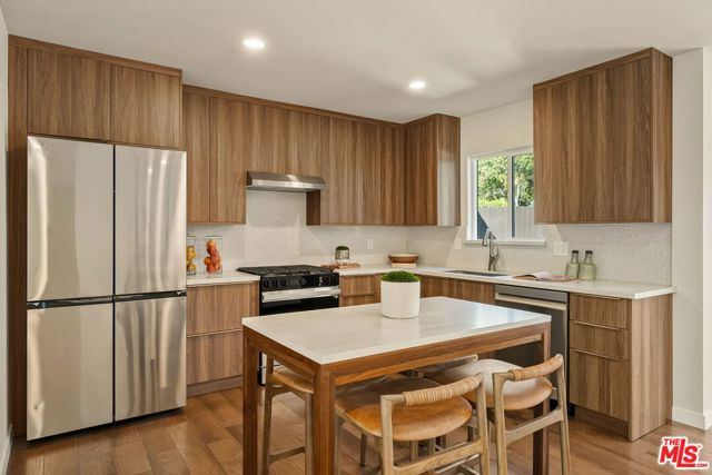 This thoughtfully reimagined mid-century residence offers sweeping views and refined indooroutdoor living in one of Eagle Rock's most desirable pockets. Light-filled interiors unfold across a cohesive open layout featuring warm wood floors, recessed lighting, and a statement fireplace. The kitchen flows seamlessly into the living and dining areas, showcasing quartz countertops, custom cabinetry, and a clean, architectural aesthetic designed for both everyday living and entertaining. Thoughtful upgrades throughout create a cohesive, turn-key experience. The living room opens directly to a private backyard with fresh landscaping, a new deck, and a generous lawn ideal for entertaining, relaxing, or play. Each bedroom is thoughtfully positioned for privacy, creating distinct retreats throughout the home. One bedroom overlooks the backyard, while another enjoys direct access to a private deck. Set apart on the opposite side of the residence, the primary suite offers a true sanctuary with abundant natural light, a walk-in closet, an en-suite bathroom, and direct access to an expansive private deck with elevated views. A warm, neutral palette and thoughtful design details carry throughout the home, creating a refined yet approachable atmosphere. Ideally located within the coveted Dahlia Heights Elementary School district and close to neighborhood favorites including Found Coffee, Little Beast, Talon Tap & Wine Bar, Colorado Donuts, and Cacao Mexicatessen. The residence delivers a perfect combination of design, livability, and connection in one of Northeast LA's most sought-after communities.