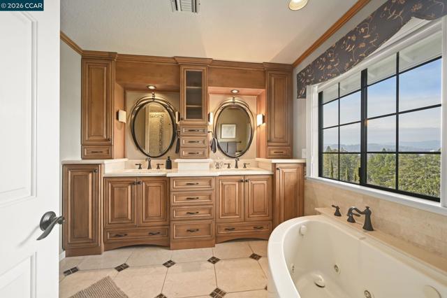 This incredible Walnut Heights VIEW home with terrific access to the East Bay’s finest downtown, modes of transportation, excellent schools and South WC's stunning Open Space. It has a flexible floor plan with something wonderful for everyone! Excellent multi-generational living opportunity with a magnificent granny flat on the lowest level, complete with living room, large eat-in kitchen, an office, large bedroom, spacious bathroom and laundry room with the same high-end finishes as the main house. Although this 1308 sq.ft. "flat"has a private entrance and is separate from the upstairs, it is also connected to the house by both stairs and an elevator and is designed to be part of the main residence if you choose. The 2917 sq.ft. main house has 4 bedrooms and 3 bathrooms and is highlighted by miles of hardwood floors and many special spaces including a piano nook. Designed to maximize the views from every room with high-quality finishes everywhere! View patios & decks abound and with many private nooks and seating areas to enjoy the spectacular outdoor environment. Follow the pristinely landscaped, wandering paths around the property and don’t miss the owned solar system already in place! Open Sat/Sun 1-4, consider parking on street to avoid being blocked in driveway.