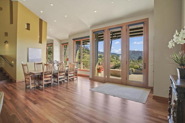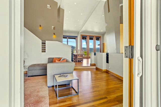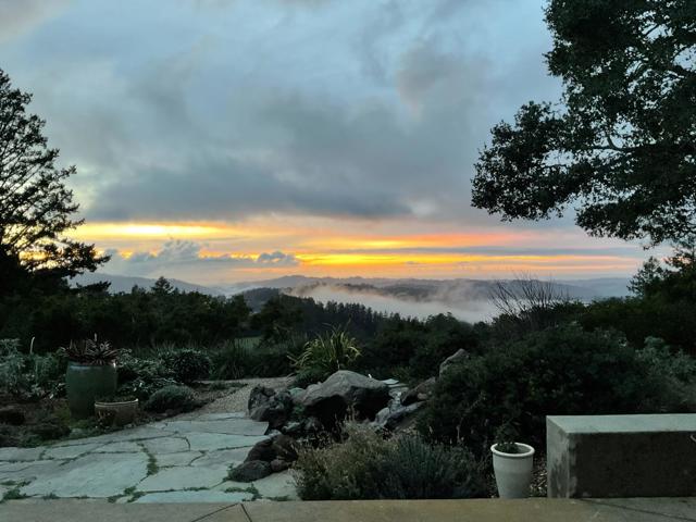 With panoramic views of the Pacific Ocean, Mindego Hill, and Skyline Ridge, this hilltop retreat on upper Alpine Road offers a tranquil front-row seat to some of the Bay Area's most stunning scenery. Sunrises and sunsets light the ridges and ocean, while fog drifts through the valleys below. Designed by D.P. Finnigan, the home features clean lines, tall windows, hardwood floors, solid wood cabinetry, and seamless indoor-outdoor flow with broad patios. The open layout includes spacious living and family rooms, a large kitchen and dining area, and a generous primary suite all with striking views. Quality craftsmanship, attention to detail, and creative design make it perfect for relaxing or entertaining. Solar power, Tesla Powerwalls, a heat pump with gas furnace, generator, and defensible space offer comfort and security. A hot tub, pond, native landscaping, citrus trees, and orchard add charm. Enjoy nearby Russian Ridge, Portola Redwoods, and Sam McDonald Parks. San Gregorio Beach is just 25 minutes away; Page Mill/280 (35), Palo Alto (40), Saratoga (30).