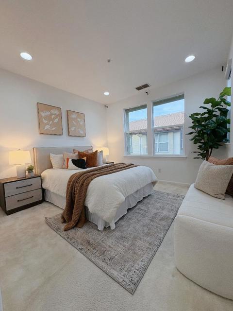 more photos coming! Stunning 3beds/3.5baths townhome in the highly desirable Evelyn Glen Community in Sunnyvale. Quiet End Unit with 2 car garage, this property offers bright open floor plan with one bedroom and full bath conveniently located on the ground floor. Spacious living room with hardwood flooring, large dual-pane windows, recessed lights, and plentiful natural lights. Gourmet kitchen boasts Granite counters, SS appliances, recessed lights, and central island with breakfast bar. Master suite enjoys walk-in closet, double sinks, and roomy stall shower. New interior paint, New Carpet, Central AC, 2 car garage, inside laundry, and private fenced front patio. Centrally located, close to shopping, dining, and Caltrain. Minutes from Downtown Sunnyvale! Easy access to Lawrence and Hwy 101. Short drive to Apple and Google campuses!