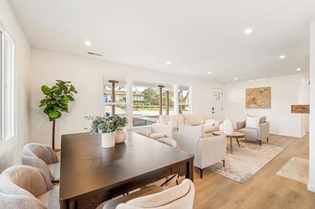 Tucked away on a quiet street in desirable Upper Seaside, this fully remodeled home sits on a spacious corner lot offering ample room to add an ADU. Taken down to the studs and thoughtfully reimagined, the home features new electrical, plumbing, and central heating system. Inside, you'll find 3 bedrooms and 2 full bathrooms, wood plank flooring, and a stunning kitchen with quartz countertops, a gas range, under-counter lighting, and stainless steel appliances. A cozy fireplace adds warmth and charm to the living space while the new Milgard windows, plaster, and insulation keep the heat in. French doors open to a patio perfect for relaxing or entertaining. Additional highlights include a finished one-car garage with an opener, an oversized 220-sf storage shed, all-new fencing, and fresh landscaping. Conveniently located near shopping, the beach, and the recreation trail for walking and biking. Move-in ready with excellent potential to expand with an ADU, this home offers both modern comfort and future flexibility. Location, Location, Location!