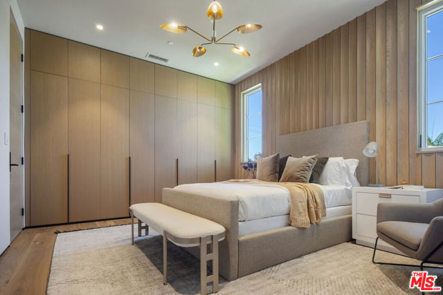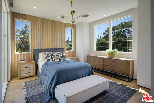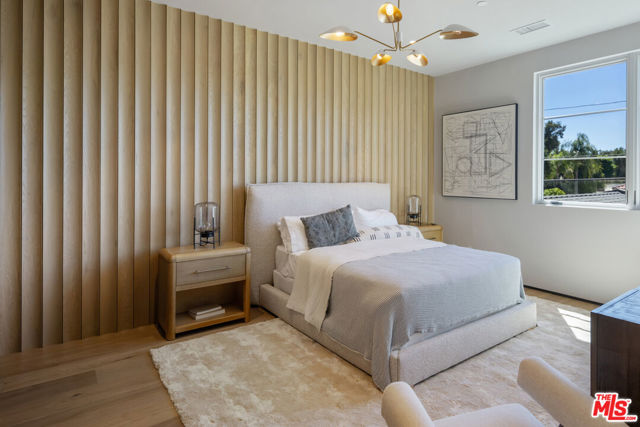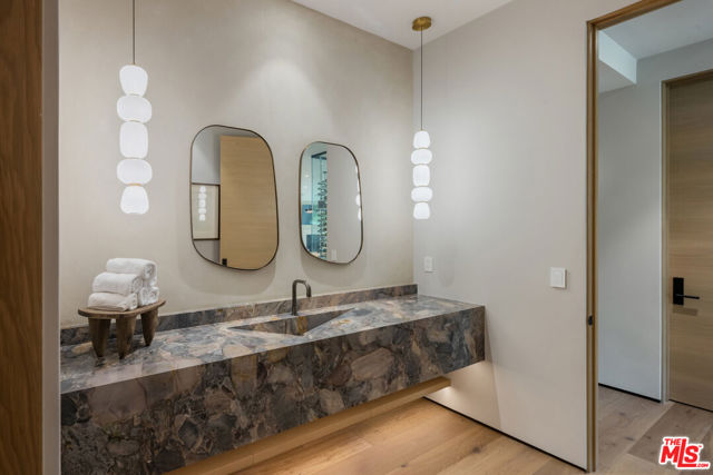 Welcome to 5056 Louise Avenue, a newly built architectural masterpiece created by Evan Gaskin Designs, nestled on a sprawling lot in the heart of Encino. This stunning residence, situated in Amestoy Estates, was designed with intention blending natural light, rich wood accents, and elegant stone elements to create a serene and luxurious living environment. Enter the main house to discover a bright, open floor plan that seamlessly connects sophisticated indoor living with the tranquility of the outdoors. Anchoring the main living space is a striking stone fireplace, a full custom bar, and a temperature-controlled wine room ideal for entertaining and relaxed evenings alike. The Chef's kitchen is a true centerpiece, featuring top-of-the-line Wolf appliances and a breathtaking oversized marble island that invites gathering and culinary creativity. The home offers five spacious bedrooms, each with its own en-suite bath. One guest suite is located on the main level, while the remaining four reside upstairs, including the expansive primary retreat. The primary suite boasts its own private terrace overlooking the lush backyard, and a spa-inspired bathroom complete with an oversized steam shower, luxurious soaking tub, and high-end fixtures by Jessi. The accompanying walk-in closet is a showstopper both in size and design. Throughout the home, you'll find quartz and all-natural tile surfaces, with premium fixtures by Phyllrich. Smart home automation by Crestron is seamlessly integrated into all main areas and the primary suite, providing effortless control over lighting, sound, and more. Floor-to-ceiling sliding glass doors lead you to a beautifully landscaped backyard oasis featuring a sparkling pool and spa. Across from the main home sits a spectacular 2,000-square-foot guest house and pool house, a gym, a recreation room, and a second full bar offering the ultimate in entertainment and relaxation. Security and convenience have been carefully considered, with a hardwired camera system covering both the interior and exterior, including front and backyard surveillance. 5056 Louise Ave is more than a home it's a lifestyle. Come experience the timeless elegance, thoughtful craftsmanship, and modern luxury that define this extraordinary Encino estate.