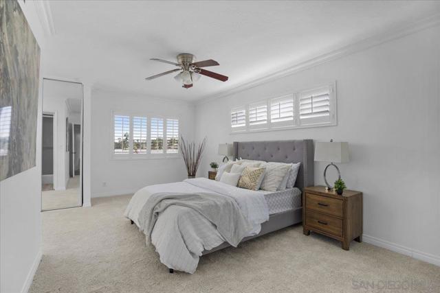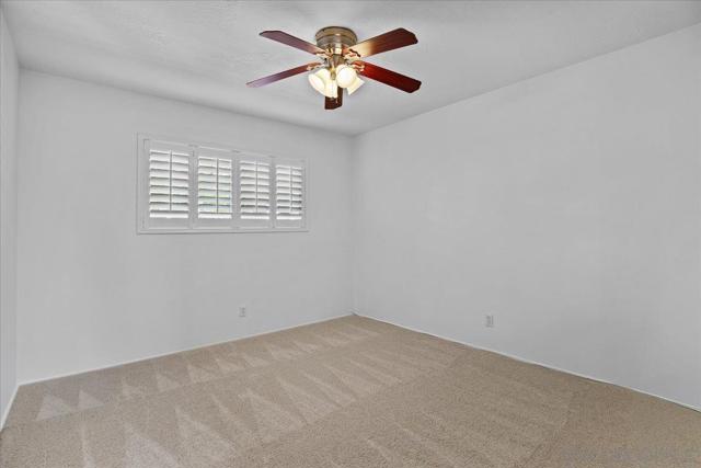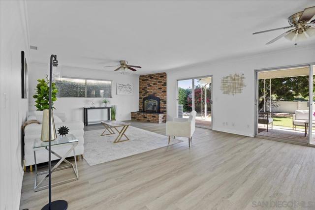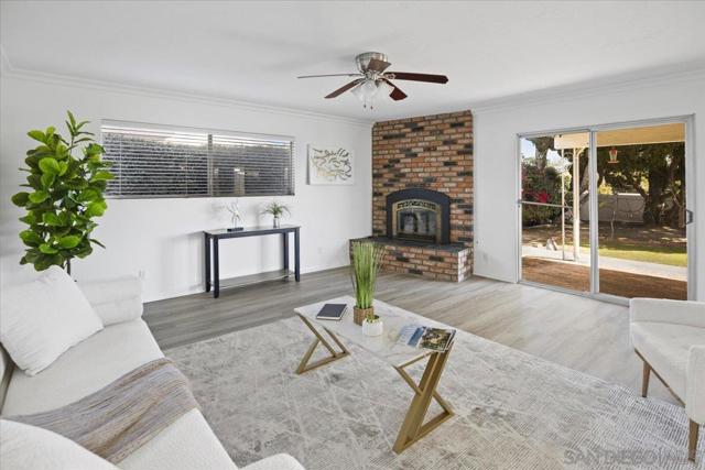 Set on a sought after Fletcher Hills hillside, this welcoming single-story home offers beautiful views, privacy, and room to truly enjoy the outdoors. Tucked at the end of a quiet cul-de-sac on nearly half an acre, the property is framed by a mature shade tree, lush lawn, and charming brick front porch. Inside, new luxury vinyl plank flooring and fresh paint create a bright, cohesive feel throughout. The formal living room features large sliding glass doors that open to the backyard, capturing sweeping views and creating an easy connection between indoor and outdoor living. The lot goes well past the vinyl fence closer to the bottom of the hill! The kitchen flows into a comfortable breakfast nook and family room centered around a classic brick fireplace—perfect for everyday living and hosting guests. Step outside to the covered patio and expansive backyard, offering endless possibilities for entertaining, gardening, play, or simply relaxing while enjoying the open views. The spacious primary suite includes two closets and a remodeled ensuite bath, while wood shutters, new carpeting, and a newer HVAC system with central A/C add comfort and peace of mind. With nearby schools, dining, shopping, hiking trails, and convenient freeway access, this home delivers space, views, and lifestyle—an ideal place to settle in, gather, and make lasting memories.