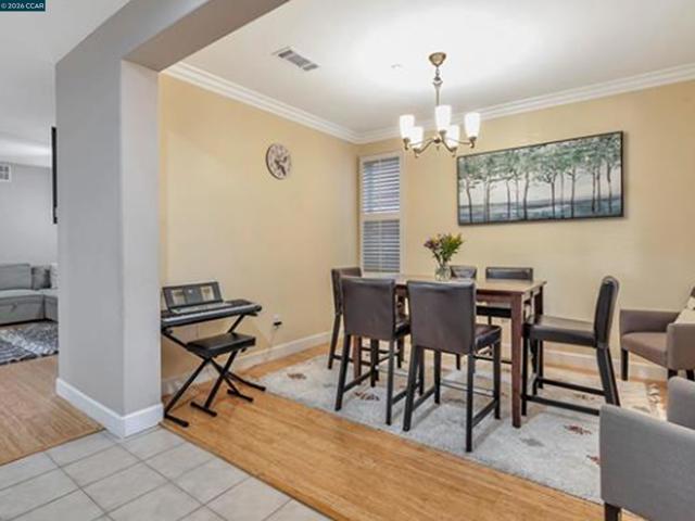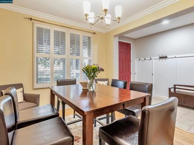 Tucked in a quiet Magnolia tree-lined lane in the desirable Hercules Bayside Community, 2036 Serra Ln boasts a covered porch with Italian tiles, wide entry, double-hung windows with plantation shutters, hardwood floors in the dining, family room and all 4 bedrooms on second floor! No carpet!Dual-zoned HVAC system. 3 of the 4 bedrooms have spacious walk-in closets , all bedrooms have ceiling fans , spacious yard with pavers, drainage , redwood gate, solar lights and lemon tree! Kitchen has stainless steel appliances, brand new 33x32 waterfall kitchen sink, newer Samsung 4-door energy efficient refrigerator (12/22), recessed lights ,breakfast nook and wide countertop. Wide garage with ample shelving and EV charger. Leased 15 solar panels with battery . Primary bath has separate tub and shower . Laundry area near the rooms has cabinets and newer Samsung dryer . Motion sensor front door light , Blink door camera . LED lights , fire sprinklers , dusk to dawn security light outside the garage , close to I-80 H-way 4, great schools , parks , transit center, Waterfront bus stop, grocery stores, restaurants, gas stations , Chase bank , coffee shops, beautiful trails with bird sanctuary and San Pablo Bay! Enjoy the stress-free living in the family- friendly