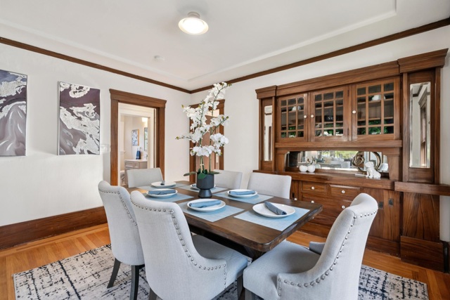 Welcome to 2457 Scenic Ave, a delightful one-story 1922 Craftsman-style home. From the front gabled roof, to the large level back yard, this home has all the vintage charm of it’s era with a freshly upgraded kitchen & bath. The front garden is landscaped, a side driveway offers off-street parking. Located on a tree-lined street of vintage homes, across the street is the neighborhood elementary school. The home features a large entry foyer graced with rich gumwood baseboards & opens to the spacious living room.The large mantle & traditional wood trim & coved ceiling are warm & inviting. The formal DR has a large built-in buffet & china cabinet with lots of storage. The kitchen and bath were recently updated including new floors, cabinets, appliances, fixtures and countertops. The updated bath has a new very large walk-in shower as well as a linen cabinet, new vanity and fixtures. The kitchen is updated w a great layout and adjacent, original eat-in dining area w a lovely Bay view! There is a separate pantry or utility room providing lots of extra storage & e-z access to the backyard. Both bedrooms have large closets with built-ins & back bedroom has a Bay view! The backyard is a huge space waiting for your creative ideas. Minutes from Dimond & Montclair distr shops, Hwy 580 & 13
