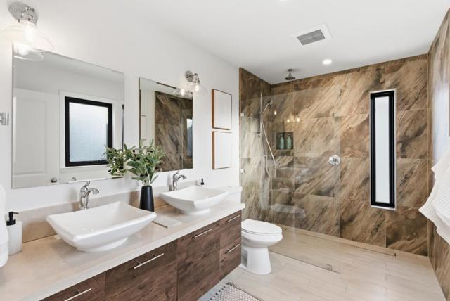 THE BEST OF THE BEST! This 3 bed, 2 bath home is 1402 sq. ft. with a rare Studio/Home Office with its own private deck approx.110 sq. ft, making this over 1,500 sq. ft. Completely renovated 1-story home that effortlessly blends contemporary design w/seamless indoor-outdoor living. Showcasing high-end finishes, offering a perfect balance of comfort, functionality and style ideal for everyday living & elegant entertaining. At the heart of the home is an open-concept living area where the kitchen, dining & living spaces come together in perfect harmony. The chefs kitchen is a standout featuring rich cabinetry, striking granite countertops, stainless steel appliances, pendant lighting & a large center island with bar seating. The serene primary suite retreat features a spa-inspired bathroom featuring dual vessel sinks, a double vanity, a spacious stall shower with frameless glass & infinity drain. 2 additional bedrooms + an updated hall bath w/skylight offers modern finishes. The light-filled family room opens directly to the patio & expansive, level park-like backyard an inviting space with endless possibilities for entertaining, play & gardening. This is located on a tree lined street with the perfect location close to Meta, Marsh Manor Shopping Center & Hwy101.