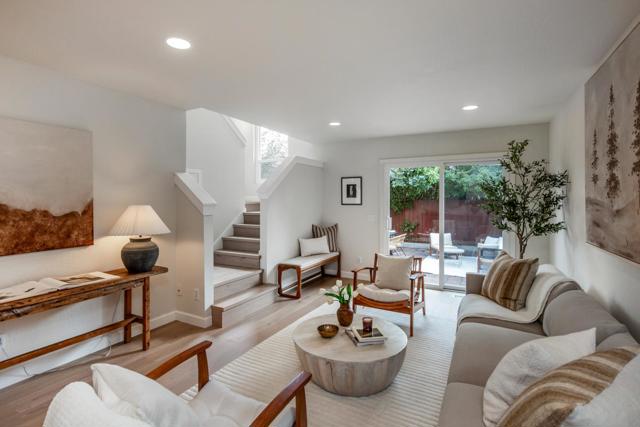 Beautifully remodeled with turnkey appeal, this North Fair Oaks gem showcases modern livability midway between Silicon Valley and San Francisco. The flexible two-story layout features two bedrooms and two remodeled baths, all enhanced by a palette of soft designer colors and white oak engineered hardwood floors. The open living area at the entrance has a modern chandelier and connects seamlessly to the sleek kitchen with a quartzite-topped peninsula with counter seating, custom suspended vent hood, and stainless steel appliances. At the rear of the home is a spacious family room that opens to the private paver-finished rear yard. A main-level bedroom and bath are complemented by the upstairs primary suite with walk-in closet, western hill views, and well-appointed bathroom. Smart features include a Ring doorbell, keyless front entry, and a smart thermostat along with central air conditioning. Roses, geraniums, and a camellia enliven the setting, which has ample off-street parking and an attached 1-car garage. Just blocks from the Redwood City Stanford campus and minutes to Meta headquarters and Highway 101.