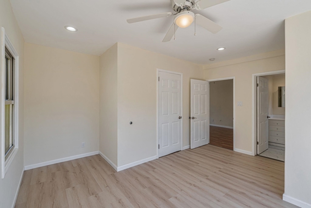 Beautifully remodeled throughout, this 2 story home has 4 bedrooms and 2 full baths & approximately 2100 square feet of living space. Spacious living room features gleaming luxury vinyl wood flooring, fresh neutral paint and a faux fireplace for ambient mood. All new interior 6 panel doors & can lighting in most rooms. The family room (could be dining room) features an entrance to the garage and ceiling fan as well as an alcove window bank. The kitchen has been remodeled with granite counters, freshly painted cabinets, can lights, new hardware and all new stainless steel appliances. Downstairs primary bedroom has a walk in closet with new closet organizers and opens to the low maintenance backyard. Brand new wall to wall carpet has been installed in the upstairs bedrooms. One car oversized garage with some storage cabinets included. Don't miss this move in ready home!