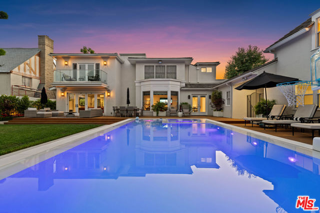 Immerse yourself in timeless elegance with this exquisitely restored and fully renovated French Normandy estate, set on an expansive 15,407-square-foot lot in the heart of Hancock Park and positioned on one of the neighborhood's most prestigious streets with sweeping views of the Wilshire Golf Course. The newly created resort-style outdoor setting features a pool, jacuzzi, and expansive new decking, forming a private oasis ideal for both entertaining and everyday relaxation. Rich in history, the estate was formerly owned by John Ferraro, a notable Los Angeles figure who hosted some of the city's most distinguished political and social gatherings at 228 S. Hudson, welcoming influential leaders and tastemakers of the era. Spanning nearly 6,200 square feet of thoughtfully updated living space, the residence offers five bedrooms and seven bathrooms, with a main level that includes an elegant living room with fireplace, a grand formal dining room, and a designer kosher kitchen complete with a butler's pantry and spacious Great Room, while a light-filled indoor-outdoor family room opens seamlessly to the landscaped gardens for exceptional flow when entertaining. Upstairs, four generously sized bedrooms each feature en suite bathrooms, including a primary suite that serves as a private retreat with an oversized walk-in closet, a luxurious spa-like bath, and a balcony overlooking the golf course. Additional conveniences include laundry rooms on both levels and an elevator, along with a separate maid or bonus room with its own bathroom and a one-bedroom guesthouse with kitchenette and bathroom located above the two-car garage. Ideally situated moments from Larchmont Village, The Grove, top restaurants, and premier schools, this remarkable estate blends classic architectural charm with modern luxury and is truly move-in ready. Square footage breakdown includes approximately 3,258 sq ft on the first floor, 2,180 sq ft on the second floor, a 189 sq ft gym, a 566 sq ft ADU, and an additional 442 sq ft garage not included in the total, with floor plans attached for detailed review.