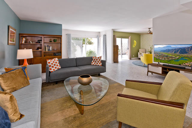 As a head start to Modernism week - Make a plan to visit this Desert Modern treat, 1810 Sandcliff Road - declared a Class 1 Historic District in 2016. Designed by Sherwin L. Barton, this cozy 40 unit complex set up in pinwheel triplex clusters, minimizing shared walls and maximizing privacy. This rare gem offers the timeless charm of the 1960s, masterfully updated for today's lifestyle. With clean lines and an open floor plan, this home radiates effortless sophistication.Inside, you'll find a sunlit living area with walls of glass that seamlessly blend indoor and outdoor living--a hallmark of classic desert architecture. The sleek kitchen is a chef's dream, complete with modern appliances, ample counter space, and a layout ideal for entertaining. The spacious bedrooms serve as tranquil retreats, while the updated bathrooms exude spa-like luxury. There is a large wall free flex space, easily converted to a 3rd Bedroom if needed or ideal for formal dining or casual meeting area.Step outside to your private courtyard oasis complete with Lemon, Palm Trees and blooming hibiscus -exit rear courtyard door where you'll discover a sparkling pool surrounded by lush landscaping and breathtaking mountain views. Whether you're lounging poolside or hosting under the stars, this home is your ticket to the quintessential Palm Springs lifestyle. Great location within community with 2 guest parking spaces adjacent to unit and dedicated carport space and storage, right outside your kitchen door. Walk across the street to Smoketree Commons and shop daily for fresh produce- also convenient walking distance to Manhattans of The Desert and The Purple Room for dining and entertainment. Located just minutes from downtown, you'll enjoy easy access to world-class dining, shopping, and entertainment while still savoring the peace of this quiet, well-maintained neighborhood. Don't miss your chance to own a piece of Palm Springs history with all the modern comforts you could want.Come see it for yourself--it's more than a home; it's a lifestyle. Professional photography coming soon!