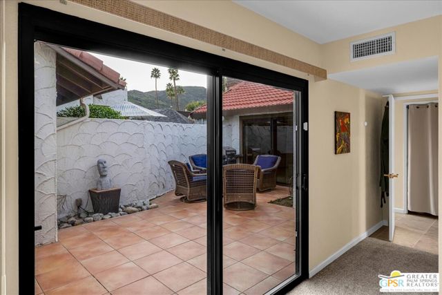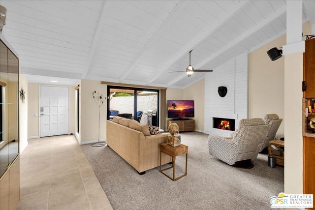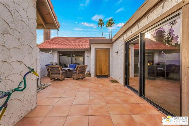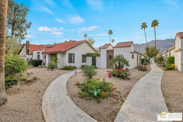 Welcome to Canyon Sands, a modern oasis in south Palm Springs! This beautifully updated 3-bedroom, 1,404-square-foot condo is the perfect blend of style, comfort, and convenience. Offered turnkey furnished, it's ready for you to move right in and start enjoying the quintessential desert lifestyle. Step inside to discover a light-filled interior with sleek finishes, dual-pane windows, and sliders that bring the outdoors in. Vaulted wood beamed ceiling and gas fireplace add stature to the large living area. Smart home technology adds a touch of modern luxury, making everyday living effortless. The layout flows seamlessly to not one, but two private patios ideal for morning coffee, al fresco dining, or simply soaking up the sunshine in privacy. The attached two car garage provides secure parking, and guest parking is available for your visitors. Situated in a vibrant community, this condo offers not only a beautiful home but an elevated living experience. HOA amenities include high speed internet; premium TV; water, sewer, trash, grounds, pools, spas, sport courts maintenance, earthquake insurance and roof. Thirty day minimum on short term rentals. Whether you're looking for a full-time residence, a weekend retreat, or an investment opportunity, this property delivers on all fronts. Don't miss your chance to own this slice of paradise in Palm Springs. Contact me today to schedule a viewing and make this dream home yours. Broker and broker's agents do not represent or guarantee accuracy of the square footage, bedroom/bathroom count, lot size / dimensions, permitted or not permitted spaces, or other information concerning the conditions or features of the property. Buyer is advised to independently verify the accuracy of all information through personal inspection and with appropriate professionals.