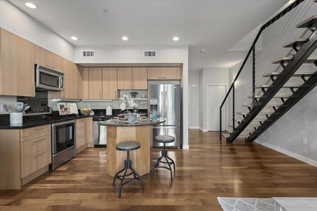 Welcome to urban living at it's finest in the highly coveted community of Plant 51. Only a limited number of these units were built in this complex and rarely come on the market. Originally named the 2 level Townhome, this unit has high ceilings & a perfectly designed open concept kitchen living & dining areas ideal for entertaining. The kitchen features sleek cabinets, an island, granite counters and stainless appliances. Also, located on the main level is a full bath & washer & dryer. The oversized primary suite is an absolute retreat located on the upper level and features high ceilings a large full bath a generous walk in closet and sliding door out to the private balcony. There is also a dedicated parking space in the gated garage below. Residents of Plant 51 enjoy exclusive access to a range of sophisticated amenities including outdoor spaces w/ bbq areas & fire pits, fitness center, community room with fireplace & pool table, bicycle room, business room, amazon lockers, dog run all in a secured environment. Located in a vibrant downtown San Jose location; walk to SAP Center, Whole Foods Market directly across the street, Diridon Station Cal Train & light rail, shops, restaurants and so much more. This unit is a must see!