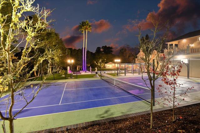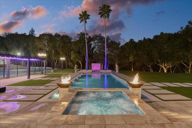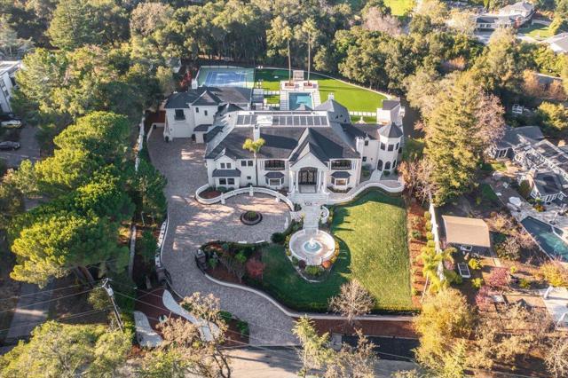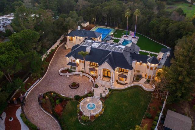 Located in the heart of Silicon Valley, this extraordinary Monte Sereno estate represents a rare fusion of grand scale, refined elegance, & unparalleled convenience. Recently transformed through a $10M+ comprehensive renovation, the residence evokes the timeless grandeur of a stately European estate. Set on 1.37 pristine, flat acres, it offers approximately 17,000 square feet of impeccably curated living & storage space beneath a brand-new $1M Tesla solar roof. The main residence features ten bedrooms & eight bathrooms, complemented by a private guest house & separate apartment. Resort-caliber amenities abound, including a ten-car garage, underground shooting range, indoor basketball & racquetball court, USTA-regulation tennis court, resort-style lap pool & spa, expansive great room, home theater, private elevator, two formal libraries, and a gym/nursery. Taken down to the studs, every detail has been reimagined w/ uncompromising quality new Jeld-Wen windows & doors, all-new appliances, plumbing, & electrical systems. Secluded within a private enclave & surrounded by other prestigious estates, the property offers sweeping mountain & city light views. This is a truly iconic Silicon Valley offering where sophistication, scale, & location converge to create an exceptional lifestyle.