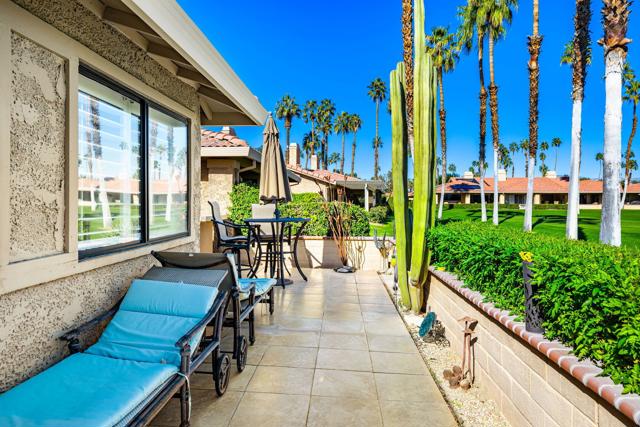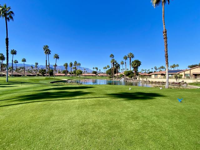 Perfectly situated on a quiet location of the 13th hole inside Chaparral Country Club, this property has beautiful 180 degree views from the expansive patio. Known for its awarding winning golf, you also have 21 pools/spas to choose from, 24 hour security, fitness center, tennis, pickle ball, card room, full service restaurant, cable TV, internet, exterior maintenance and every possible social activity you could imagine. Central to freeway, shopping, dining and Eisenhower medical center, you won't find a better location for quick valley access. With 3 bedrooms and 2 baths and upgrades throughout you will will have plenty of space to entertain and enjoy the desert lifestyle. Don't miss seeing this beautiful property live like you're on vacation everyday! Property could be sold turnkey furnished/or separate out of escrow.