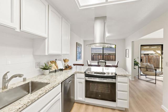 Welcome home to this light and bright SINGLE STORY, attached SINGLE FAMILY residence featuring 2 bedrooms and 2 bathrooms with an open & inviting floor plan. High ceilings and new skylights fill the home with natural light, while the cozy fireplace adds warmth and charm to the living space. The beautifully UPDATED kitchen showcases crisp white cabinetry, new granite countertops, a stylish backsplash, and Stainless Steel appliances including NEW oven/range, NEW vent hood, and A NEW sink. A large walk-in pantry provides excellent storage and functionality. The spacious primary bedroom offers a lovely bay alcove and two closets, creating a comfortable and private retreat. Throughout the home, you'll find all NEW LUXURY VINYL FLOORING and fresh interior paint, giving the space a clean, modern feel. Additional upgrades include a BRAND NEW ROOF with gutters, attached one-car garage, and a private rear yard with patio cover-perfect for relaxing or entertaining. Ideally located near commuting routes, shopping, schools, and parks, and situated within the Paradise Elementary School and Sobrato High School attendance areas. This MOVE IN READY HOME is a must-see.