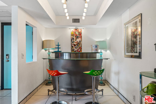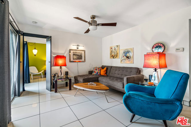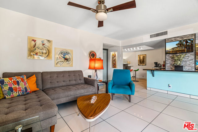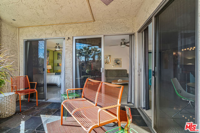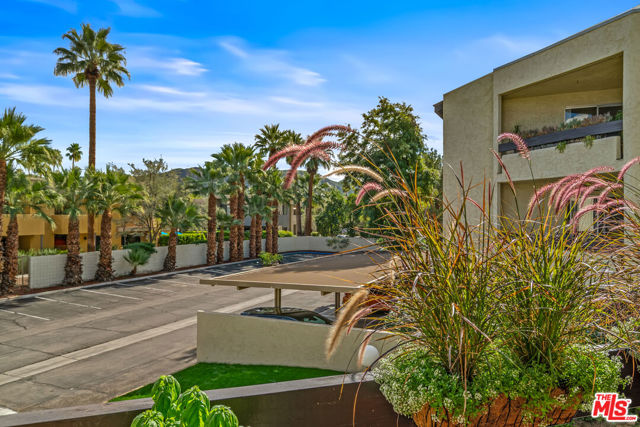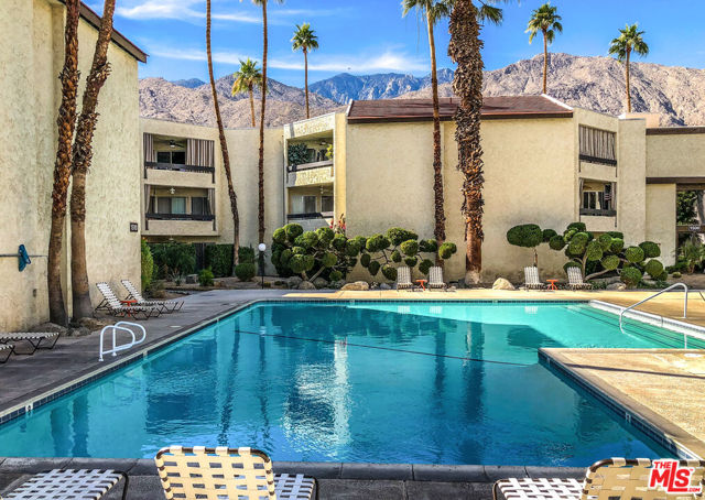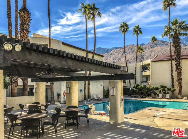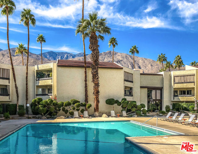 Welcome to resort-style living at The Biltmore, Phase III in Palm Springs. This desirable second-floor residence features a sun-filled, covered patio accessed by four glass sliders, creating an abundance of natural light and showcasing mountain and palm tree views. The open floor plan is finished with white tile flooring throughout and an updated kitchen offering glass-front upper cabinets, wood lower cabinetry, granite countertops, stone backsplash, and stainless steel appliances. The primary suite includes a wall of closet space and a spacious en-suite bathroom with a floating vanity and tile backsplash. The second bedroom features a walk-in closet. Community amenities include a large pool and spa, barbecue area, and lush landscaped grounds. Centrally located near Palm Springs' renowned dining, shopping, entertainment, cultural attractions, and hiking trails. The HOA has recently completed several major upgrades, including roof resurfacing, elevator replacements, a new fire alarm system, new common-area AC chillers and fans, and resurfaced spa and pool decks. Additional features include one assigned carport space (#78), a storage locker (#22), and convenient community laundry rooms on each floor.