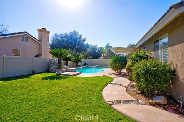 Located in a highly desirable neighborhood where single-level homes rarely come on the market, this move-in-ready Single-Level POOL home sits on a prime corner lot and reflects true pride of ownership throughout. The open-concept family room flows seamlessly into the kitchen, ideal for both everyday living and entertaining. Interior features include newer vinyl flooring, plantation shutters, a warm and inviting double-sided fireplace, and a new dishwasher. The spacious primary suite includes a walk-in closet and a double-sink vanity. The home offers a 3-car garage, plenty of parking and approx 50’+ of RV parking behind the gate, providing exceptional flexibility and storage. Step outside to your private backyard retreat featuring a sparkling pool and spa with a tranquil waterfall, with tile and plaster refinished approximately three years ago—perfect for relaxing or hosting guests. Additional highlights include no HOA, low property taxes, and a sought-after Corona location. Conveniently located close to parks, schools, shopping, and freeway access. This is a rare opportunity you won’t want to miss!
