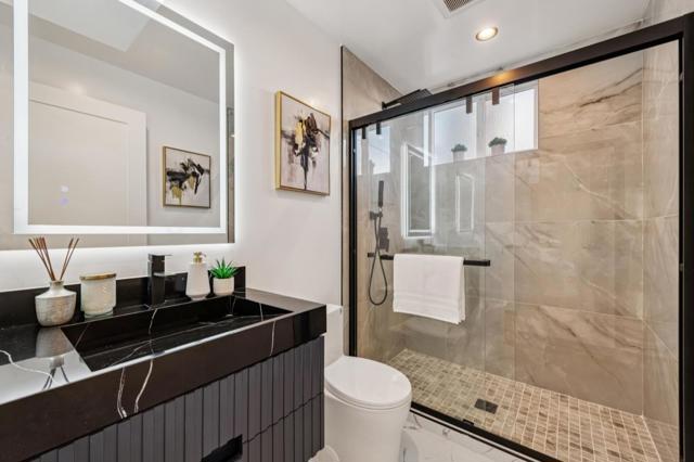 Sophisticated & modern, this contemporary gem is nestled in the highly sought-after Outer Parkside and perfectly captures the essence of coastal living, just a short stroll from Ocean Beach, ideal for surf enthusiasts. This beautifully renovated 4BD/4BA residence spans 2,414 square feet across 2 levels, offering exceptional flexibility & comfort. Remodeled from the studs with all-new electrical & plumbing, and with lower level completed with permits, this home showcases a bright, open layout highlighted by white oak hardwood floors, intelligent motion-sensor LED stair lighting, Smart thermostat, & Ring security camera installed. Upper level features a spacious living/dining area, chefs kitchen with bar island, quartz countertops, & sleek modern cabinetry, complemented by 2BBD/2BA, including one primary suite. Lower level offers a welcoming family room with wet bar, 2BD/2BA including a second primary suite with 9 feet ceiling, ideal for extended living or guests. Additional highlights include washer/dryer hookups, tankless water heater, EV charging outlet, 1 car garage, & a low-maintenance backyard. Ideally located near Guss Market, local shops, restaurants, top-rated schools, & outdoor destinations such as the Great Highway Trail, Golden Gate Park, & Ocean Beach. A true must-see.