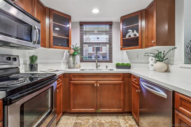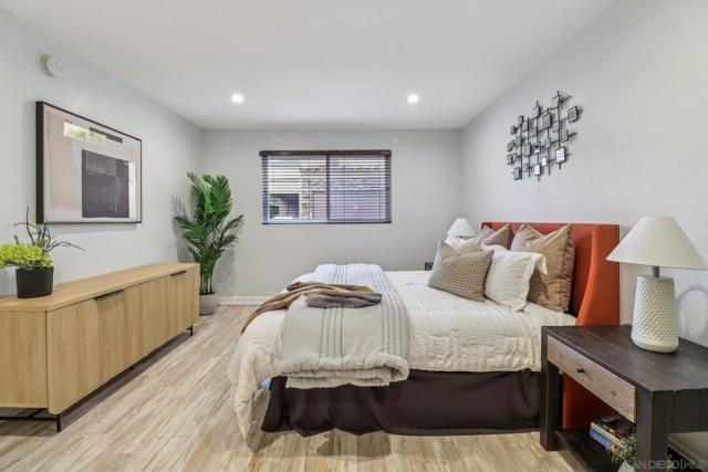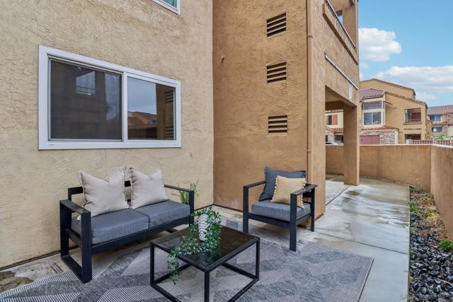 Beautifully updated and move-in ready, this lower-level 1-bedroom condo in the desirable Villa Taviana community offers style and convenience. The bright, open floor plan features a spacious living room with crown molding and an adjoining patio for seamless indoor-outdoor living. The kitchen, complete with breakfast bar, stone counters, stainless appliances, and ample cabinetry, flows into the dining and living areas—perfect for entertaining. The king-sized bedroom includes a walk-in closet with custom barn doors, while in-unit laundry and a large storage closet add practicality. New AC! Villa Taviana provides resort-style amenities including two pools and spas, a fitness center, tennis courts, clubhouse, playground, BBQ areas, and EV charging stations. Located within the acclaimed Poway Unified School District, with Turtleback Elementary nearby, plus easy access to shopping, recreation, and freeways, this home is the perfect blend of comfort, convenience, and community.