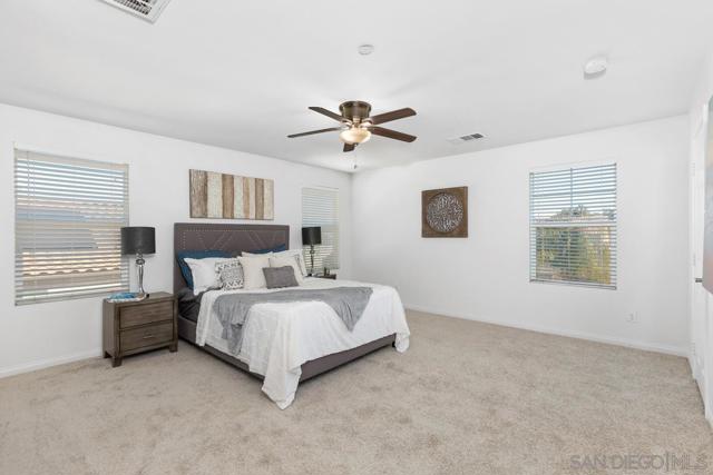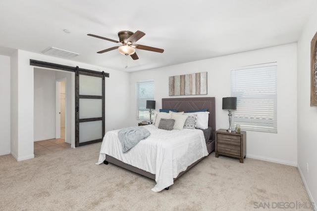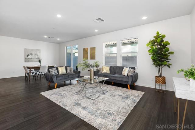 Welcome to this beautiful home in Santee's Prospect Fields community. Move-in ready with fresh new paint and new carpet. 3 bedrooms with an additional loft/office, and over 2,100 square feet of living space. This home offers luxury and convenience. Highlights include an owned solar system, gourmet kitchen with quarts countertops and island. Community amenities include a playground and sports court, with low HOA fees, no Mello Roos and easy access to shopping and freeways. Don't miss this opportunity to own a home in Santee!