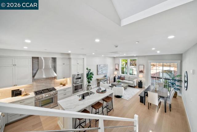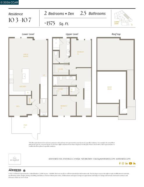 600 Hartz, where classic beauty & modern elegance coalesce, nestled in the heart of downtown Danville. This new boutique building boasts a collection of 36 luxury residences in sixteen different floor plans with 1, 2, or 3 bedrooms, each designed around a lushly landscaped courtyard, offering a tranquil escape for residents. Given its prominent location, the architectural design of 600 Hartz was crafted to complement the historic charm and character of Danville. (visit the website @ 600Hartz.com). Nestled in a prime location, this stunning 2-level townhouse style residence offers a seamless blend of comfort and style. Step inside to discover a beautifully appointed kitchen featuring sleek quartz countertops, rich dark wood cabinetry, and premium stainless-steel appliances—an inviting space for both casual meals and gourmet creations. The open floor plan extends effortlessly to a charming front patio, perfect for morning coffee or evening relaxation. Venture up to the rooftop deck, where breathtaking panoramic views of Las Trampas and Mount Diablo create an unforgettable backdrop for entertaining or unwinding under the stars. Photos are of our model home #107.