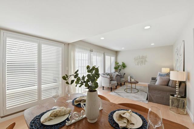 Rarely available ground-floor townhouse lives like a single-family home. Meticulously maintained & thoughtfully updated by the original owner for 47 years. No kids, no dogs. Featuring 2 bedrooms/ 2 bathrooms, the home offers a bright, welcoming layout that feels larger than the sq ft. Updated Armstrong flooring throughout, double-pane windows, smooth ceilings, recessed lighting, and fresh interior paint. Kitchen and bathrooms showcase durable Kerrock countertops, wood cabinetry, and clean, timeless finishes. New cordless blinds & shutters enhance the living area with high ceilings, while bypass shutters provide privacy in the primary bedroom that also offers high ceilings. A large, spacious private patio extends the living space outdoors; perfect for entertaining, gardening, or relaxing in the fresh air. Add'l highlights include double-car garage w direct access to the house & a door to the patio for gardening. Very desirable location in a smaller pod of just 3 units, offering added privacy compared to the typical 6-unit configuration. The beautifully landscaped community features lush greenery & sparkling pool w bathrooms & community room. Top schools, shopping, restaurants, & Starbucks close by & easy access to Hwys 85 & 280 for a quick commute to major tech employers.