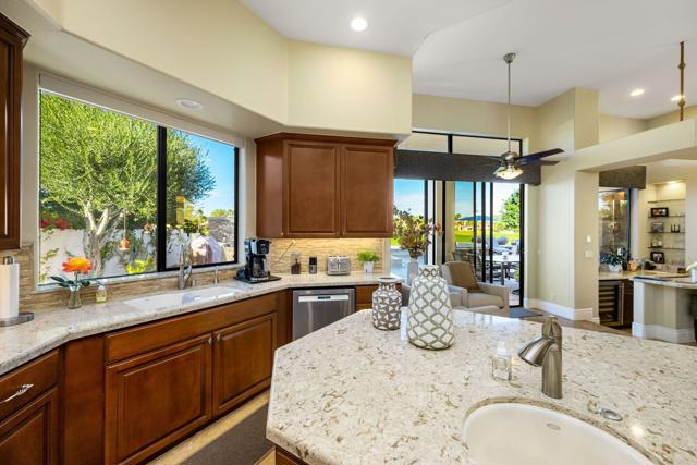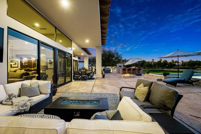 An entertainer's UNICORN. Original owners of this rare Summit Plan 6 Semi-Custom home, located on the 13th Hole of the Tom Weiskopf designed golf course in the Legends Gate of the PGA West development; there were only a handful of these Summit Plan 6 Floor Plans ever built by Southern Hills Developers, and arguably the absolute best construction in all of PGA West. This specific floor plan doesn't come available very often, and features a 16,000+ sqft expansive lot with an indoor / outdoor feel, and numerous different sitting areas, 5 fire features, infinity pool w/ several water-pot features, custom built-in BBQ with Alfresco Grill, Pizza Oven, Crab Pot Boil, and Farm Sink. There are mountain views in nearly every direction to enjoy. The interior features 3 bedrooms (including a detached casita) and an office (that could be converted into a 4th bedroom). All of the rooms in this home have their own private entrances. This property is being offered Turnkey Furnished (inventory attached to the MLS listing). Sellers have a Premier Membership available for purchase thru PGA West (the purchase of this Membership is NOT required, as sellers are planning to remain Members at PGA West).