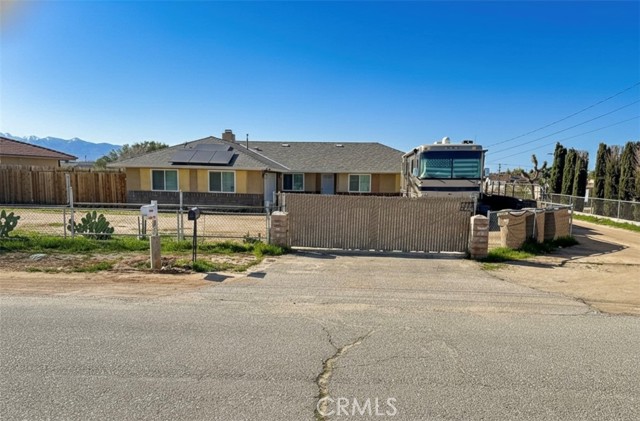 Nestled on a .72 acre in the heart of Hesperia, a true entertainer's paradise designed for grand living and unforgettable gatherings. With four spacious bedrooms and two bathrooms. Sunset views from your backyard! This cozy residence offers privacy, comfort, and open space throughout the home. The backyard is designed to accommodate large family events and private gatherings. Located in commuter-friendly Hesperia, this home offers quick freeway access, placing you within driving distance to Wrightwood and Big Bear Mountain resorts, as well as Southern California beaches and Los Angeles attractions. Best school districts in the High Desert. Septic has been upgraded with risers flush to the ground for easy inspections and service. RV hook up with 50 amp service. usable graded backyard for all your toys and future projects. Brand new cedar wood fencing with two separate entries. Garage is insulated and epoxy floors. Whether you’re hosting 50 guests or enjoying a quiet evening by the fireplace, this home is truly a perfect entertainer’s dream. Make this home your own.