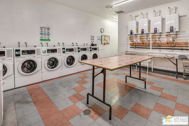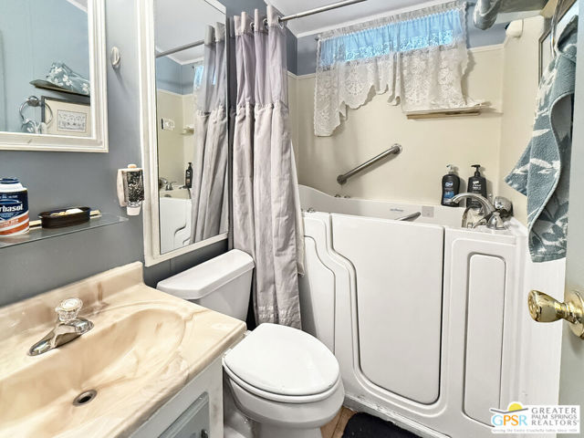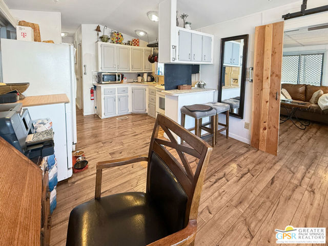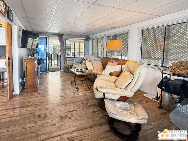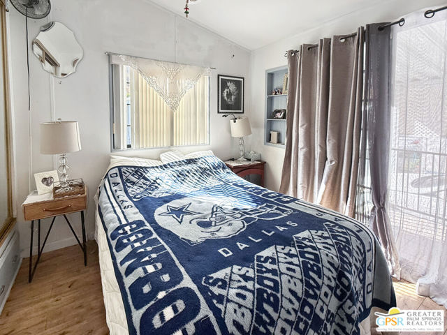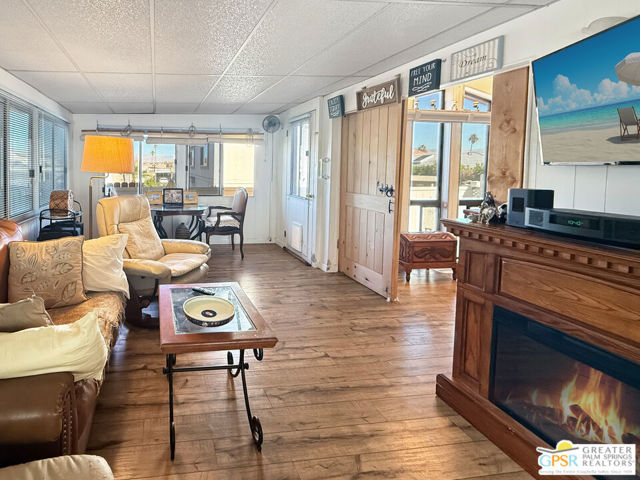 Discover Your Ideal Desert Retreat Move-In Ready! Step into this beautifully furnished manufactured home, complete with a versatile bonus room currently used as a cozy den, but easily transformed into a second bedroom with its stylish barn door. Enter through the sliding door, where you'll be greeted by a spacious, covered carport and a charming outdoor sitting area with a tiled floor: perfect for relaxing. Inside, the open-concept kitchen comes fully equipped with modern appliances: stove, microwave, dishwasher, refrigerator, and even a washer and dryer. The electric fireplace adds warmth and ambiance, while the laminate wood flooring and tall windows fill the home with natural light. The spacious bedroom features mirrored closet doors and a built-in dresser, offering plenty of storage. The bathroom is designed for ease and comfort with a convenient walk-in tub. Nestled at the base of the stunning desert mountains, this home is located in Sungate, a secure, 55+ Park Model/RV community. Just minutes from the airport, shopping, restaurants, casinos, and scenic hiking trails, convenience is at your doorstep. The community offers resort-style amenities, including two swimming pools, hot tubs, a fitness center, library, laundry facilities, and a community center that hosts year-round events.Don't miss out on this opportunity to embrace the desert lifestyle. Schedule your tour today and make this beautiful home yours! HOA is $232/mo and land lease is approx $96/mo.