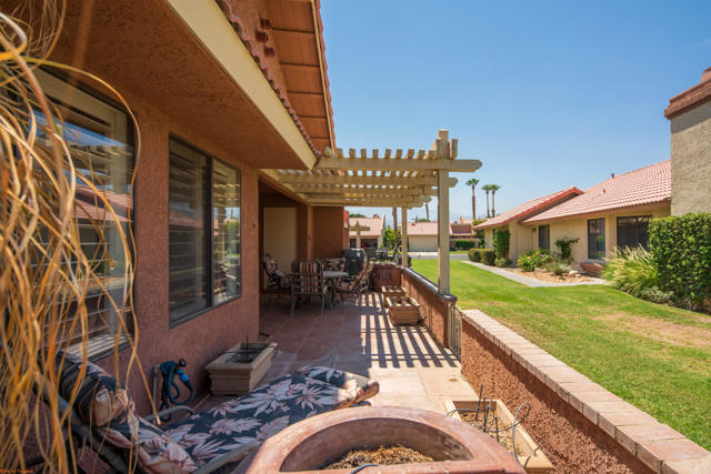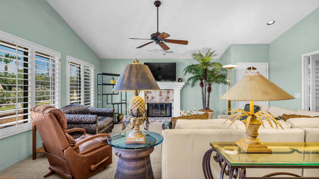 Highly sought-after 3-bedroom, 2-bath floor plan--one of the best values in Country Club living! Offered furnished and already rented for the season, highlighting its appeal as a vacation home or income property.Nestled within the gates of Oasis Country Club, this home offers not only a desirable layout but also access to an exceptional lifestyle. Here, resort-style amenities meet a vibrant, active community, with 18 sparkling pools and spas, tennis and pickleball courts, a netted golf practice area, an 18-hole putting course, and a welcoming clubhouse with two on-site restaurants. The beautifully maintained golf course was recently ranked one of California's Top 25 by Golf Advisor! Oasis CC is member-owned and not age-restricted, making it perfect for year-round living or a vacation retreat.This meticulously maintained home, set along a lush greenbelt, is just steps from a pool and spa. The open living and dining areas feature vaulted ceilings and a wall of windows with a sliding door leading to your private patio. A cozy fireplace makes winter evenings warm and inviting. The primary suite offers two closets, an updated shower, and direct access to a private patio--which also connects to the attached two-car garage.Come experience the comfort, charm, and unbeatable amenities that make Oasis Country Club such a special place to call home.