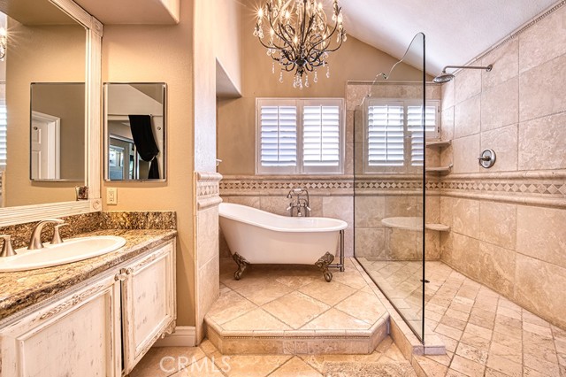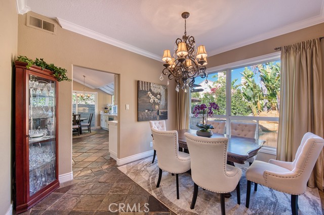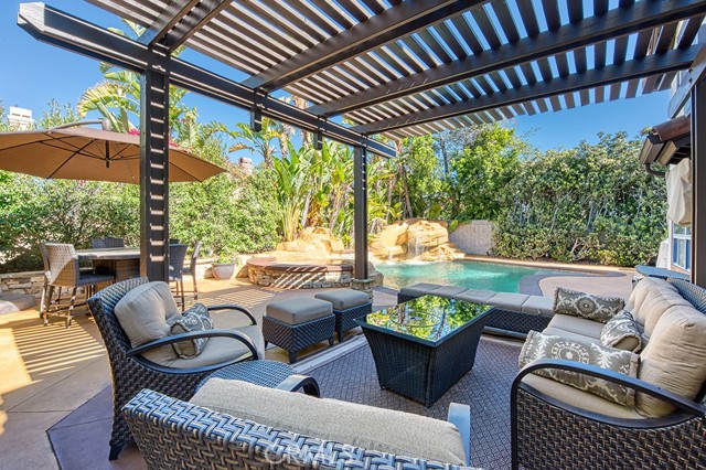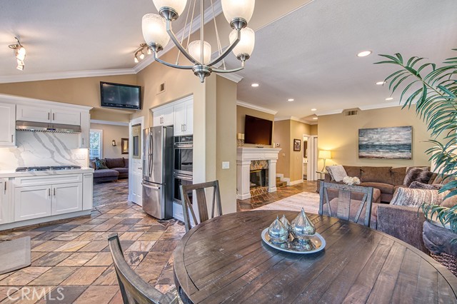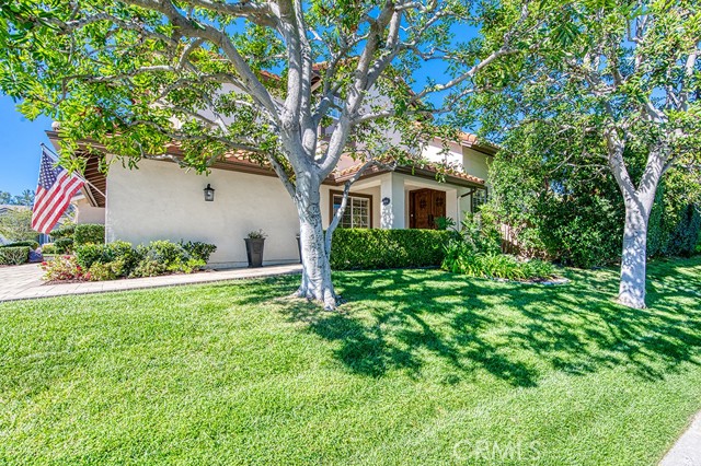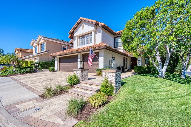 Welcome to 1 Saint Elias, a beautiful 5-bedroom pool home with a versatile loft located in the prestigious guard-gated community of Dove Canyon. This spacious and functional floor plan features a convenient downstairs bedroom with ceiling fan, recessed lighting, mirrored closet, and private en-suite bath, ideal for guests or multi-generational living. The main level offers formal living and dining rooms along with an inviting family room with fireplace that opens to the kitchen. The remodeled kitchen features new countertops, soft-close cabinets, a dining nook, double ovens, newer appliances, and a walk-in pantry. A separate laundry room includes a new washer and dryer. Upstairs you will find four additional bedrooms plus a loft and new carpet throughout the second level. Bedrooms feature mirrored closets, including a spacious bedroom with vaulted ceilings, while the shared bathroom has been updated with new countertops. The primary suite offers vaulted ceilings, a cozy fireplace, and two walk-in closets. The primary bathroom features dual vanities, a soaking tub, and a walk-in shower. Additional upgrades include plantation shutters throughout and a recently replaced whole house fan. The private backyard is designed for entertaining with a saltwater pool and spa featuring a slide, a new pool heater, and a variable-speed pool pump. A covered pergola provides shaded outdoor living space and mature privacy landscaping surrounds the yard. Additional highlights include a three car garage with storage, new garage doors and pavers, and access to Dove Canyon community amenities including pool, spa, tennis courts, pickleball, parks, and scenic hiking and biking trails. Conveniently located within walking distance to Santa Margarita High School and nearby restaurants and cafés, this home offers comfort, space, and an exceptional lifestyle in one of South Orange County’s most sought-after communities.