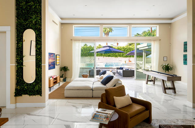 The most incredible poolside mountain views! A unique swimming pool configuration. One jacuzzi, one swim up bar, one kiddie pool and a full adult pool. Something for everyone! Imagine waking each morning in a sun-drenched Palm Springs oasis, where modern design, breathtaking mountain vistas, and effortless indoor-outdoor living converge. This exquisite 5-bedroom, 4-bathroom home in the coveted Tahquitz River Estates, built in 2018, offers nearly 2,800 square feet of sophisticated living space crafted for both comfort and celebration. Enter through soaring ceilings and dramatic clerestory windows that fill the open living areas with natural light, creating an airy and inviting atmosphere. The chef-inspired kitchen, outfitted with custom cabinetry, premium appliances, and expansive countertops, is a masterpiece for entertaining or savoring quiet culinary moments. Retreat to any of the five luxurious bedrooms, including three private en-suites, where design meets tranquility. Step outside to your personal resort: a sparkling custom pool and spa, built-in barbecue, and shaded patios set the stage for everything from elegant soirees to serene evenings under the stars, all framed by panoramic mountain views. Situated on a generous 9,583-square-foot lot and just minutes from downtown Palm Springs, this home offers instant access to world-class dining, boutique shopping, art galleries, and scenic hiking trails. Whether you seek a permanent residence, a weekend sanctuary, or a lucrative vacation rental, this property delivers an unparalleled blend of luxury, lifestyle, and timeless Palm Springs charm.