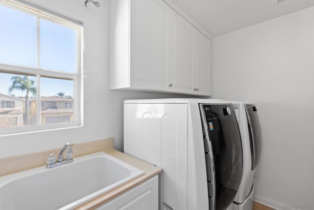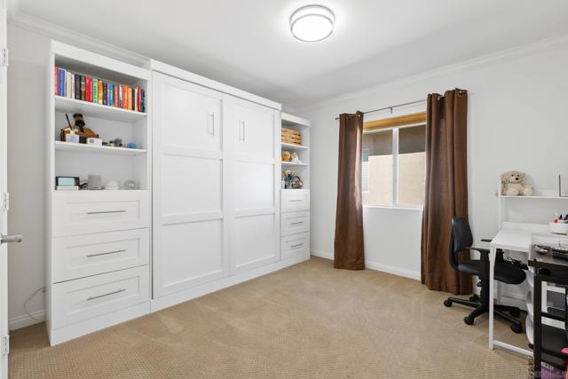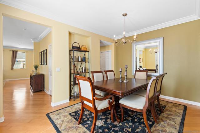 Located in a highly sought-after 4S Ranch neighborhood within the award-winning Poway Unified School District, this upgraded home features owned solar, a highly desirable floor plan, and seamless indoor-outdoor living. The interior showcases 9-foot ceilings downstairs with 8-inch crown molding and engineered pecan wood flooring installed on a diagonal. The downstairs family room offers a cozy fireplace and opens to the chef’s kitchen featuring stainless Thermador appliances, a large center island with Silestone countertops, walk-in pantry, and breakfast area with French doors opening to the backyard. The backyard features beautiful hardscaping, pergola-covered patio, tranquil fountain, and putting green ideal for outdoor living and entertaining. A charming interior courtyard off the dining room provides an additional private outdoor retreat. Upstairs, the primary suite offers crown molding, two walk-in closets, and a spa bath with dual vanities, soaking tub, and large walk-in shower. One secondary bedroom is ensuite, ideal for guests. Additional features include dual-zone AC, custom window treatments, French doors with built-in blinds, ceiling fans, fire sprinklers, upstairs laundry with sink and hanging bar, and a three-car tandem garage. Ideally located near parks, shopping, restaurants, library, hiking trails, and Pioneer Park offering expansive green space, basketball courts, and a splash pad. Exceptional 4S Ranch location within the award-winning Poway Unified School District, this beautifully upgraded home offers owned solar for energy efficiency and cost savings, a highly desirable floor plan, elegant finishes, and outstanding walkability to parks, shopping, restaurants, and community amenities. The spacious interior features soaring 9-foot ceilings downstairs with impressive 8-inch crown molding and engineered pecan wood flooring installed on a diagonal. The downstairs family room offers a warm and inviting fireplace and flows seamlessly into the chef’s kitchen showcasing stainless Thermador appliances, a large center island with Silestone countertops, a generous walk-in pantry, and a spacious breakfast area with French doors opening to the backyard. A downstairs bonus living room overlooking the charming interior courtyard makes an ideal work-from-home office. The beautifully designed backyard features gorgeous hardscaping, a pergola covered patio, tranquil fountain, and putting green creating an ideal setting for outdoor living and entertaining. The home also offers a charming interior courtyard off the dining room providing an additional private outdoor retreat. Upstairs, the very large primary suite features crown molding, two walk-in closets, and a spa-inspired bath with dual vanities, soaking tub, and large walk-in shower. One secondary bedroom is ensuite, offering excellent flexibility for guests or family members. Additional features include dual-zone air conditioning, custom window treatments throughout, French doors with built-in blinds within the glass, ceiling fans, built-in fire sprinklers, an upstairs laundry room with sink and hanging bar, and a three-car tandem garage. Ideally located near nearby hiking trails and Pioneer Park offering expansive green space, basketball courts, and a splash pad.