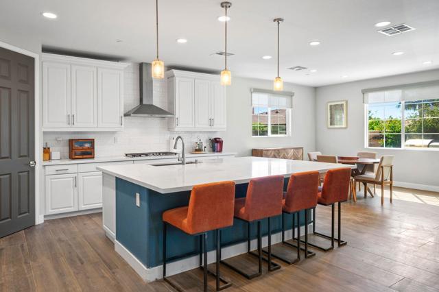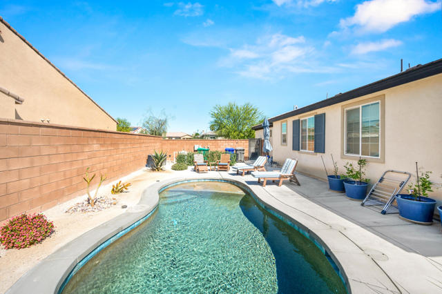Experience La Quinta living in this upgraded Pomona plan, where modern ranch meets private desert oasis. The heart of the home is a chef-inspired kitchen featuring a massive center island and walk-in pantry, flowing seamlessly into an expansive great room and dining area. Retreat to the primary suite with a spa-like bath and generous walk-in closet, while three additional bedrooms and a quiet study complete the perfect package.The true showstopper awaits just outside though; a backyard sanctuary centered around a sparkling, custom-shaped pool and a spacious covered patio surrounded by a lush desert landscape.Complete with a three-car garage (including a private side-entry bay perfect for a golf cart or workshop), this move-in-ready gem offers the ultimate blend of luxury and utility in the desert.