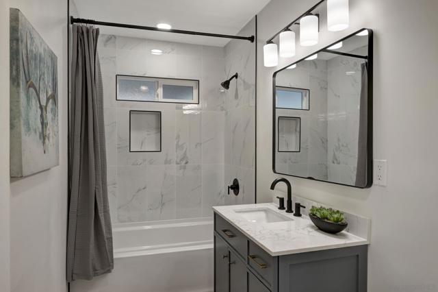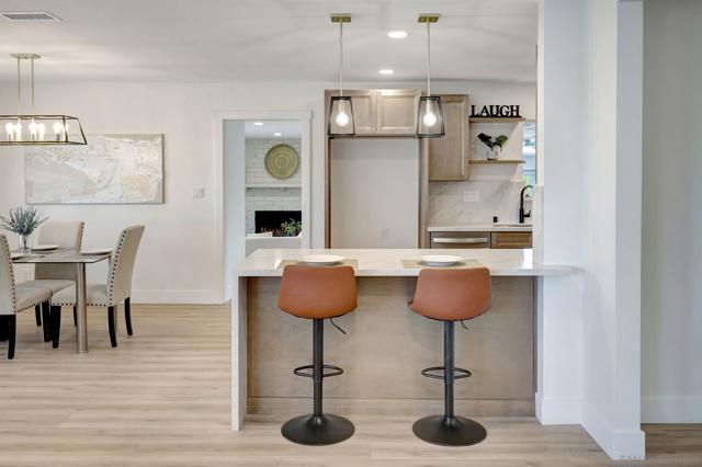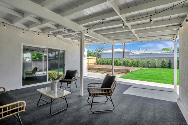 Beautifully remodeled, single-level home in La Mesa designed with exceptional indoor/outdoor living. The home features a stunning modern kitchen that opens seamlessly to the dining area, living room, and an expansive family room with a cozy fireplace—creating a bright and spacious layout. Large sliding doors from the family room lead to an impressive covered patio of nearly 400 square feet, providing the perfect space to host guests or relax while enjoying views of the beautifully landscaped backyard. Inside, the home showcases wide-plank LVP flooring throughout, new Milgard windows, and tastefully updated, modern bathrooms. Additional highlights include new central HVAC and ducting, roof, indoor laundry, large attached workshop and a desirable corner lot that adds wonderful curb appeal. Conveniently located near Grossmont High School and just minutes from La Mesa Village, where you’ll find a variety of popular dining and shopping options.