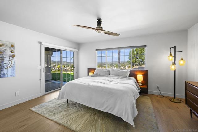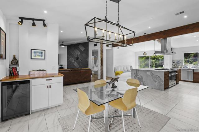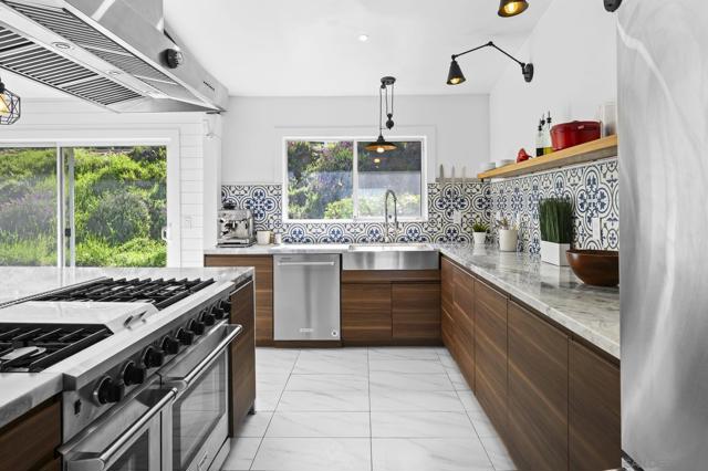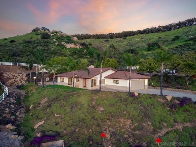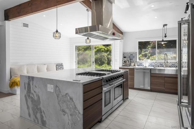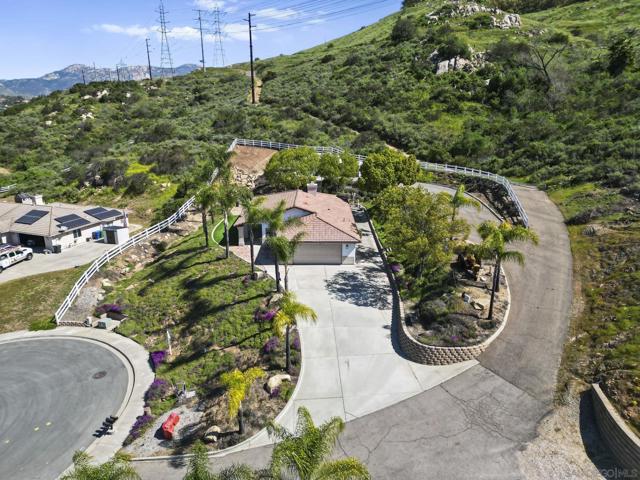 Incredible view home situated on a huge ¾-acre lot at the top of a peaceful cul-de-sac. Surrounded by nature, the home sits high above the street offering privacy, beautiful views and has been extensively remodeled over the past 5 years. The stunning kitchen is the centerpiece of the home, featuring marble countertops, massive island, 48” Thor range, Viking fridge, & a beautiful solid walnut floating shelf. Built-in seating provides a cozy dining space and even includes a dog nook. The open-concept layout w/ vaulted ceilings creates an airy living space where the kitchen, dining area & living room flow seamlessly together. The living room features a dramatic slate tile fireplace wall, custom entertainment center, and wired surround sound w/ additional speakers in the kitchen & dining areas. Luxury vinyl plank flooring runs throughout the main living areas. The spacious primary suite enjoys scenic views & direct access to an outdoor patio & a large walk-in closet. The spa-inspired primary bath features stunning floor-to-ceiling Italian porcelain tile shower and a modern glass shower enclosure that allows abundant natural light. Outdoor spaces are equally impressive, w/ beautiful landscaping, multiple patios, fire pit area, and a pad ready for a hot tub. An upper driveway provides additional parking w/ full RV hookups & space that could accommodate a future ADU. The property currently includes a 5th-wheel trailer that has been used as a short-term rental. With its exceptional finishes, expansive lot, and peaceful setting, this is truly a special property.