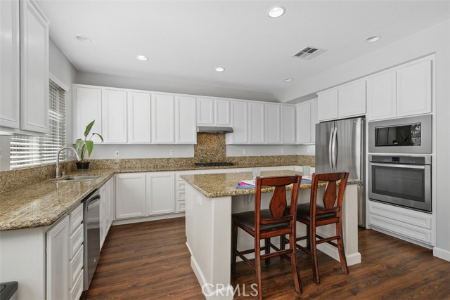 Nestled in the highly sought-after Morgan Hill community, this stunning 5-bedroom, 4.5-bathroom residence offers approximately 3,755 square feet of thoughtfully designed living space, complete with breathtaking views. Tucked away on a quiet cul-de-sac, the home features a 3-car garage, paid solar, pre-wiring for an EV charging station, and a comprehensive security system with installed cameras—blending comfort, efficiency, and modern convenience. Step inside to a bright and welcoming interior, showcasing a formal living room, an inviting family room, and an elegant dining room ideal for entertaining. At the heart of the home is the expansive kitchen, beautifully appointed with granite countertops, crisp white cabinetry, and a large center island—perfect for cooking, gathering, and everyday living. A sunlit breakfast nook offers a peaceful space to start your day while enjoying scenic surroundings. The main level includes a private bedroom with its own en-suite bath, ideal for guests or multi-generational living. Upstairs, you’ll find two bedrooms connected by a convenient Jack-and-Jill bathroom, along with an additional bedroom featuring its own en-suite for added privacy. The luxurious primary suite is a true retreat, offering generous space, a private sitting area, and dual walk-in closets. The spa-inspired primary bathroom includes a soaking tub, separate shower, and dual vanities. A spacious upstairs loft provides flexible living space—perfect for a media room, home office, or play area. Residents of the Morgan Hill community enjoy access to resort-style amenities, including a swimming pool, tennis and basketball courts, a fully equipped fitness center, and a vibrant clubhouse hosting year-round events and activities. With its expansive layout, energy-efficient upgrades, scenic views, enhanced security features, and exceptional community offerings, this home delivers the perfect blend of comfort, style, and lifestyle.